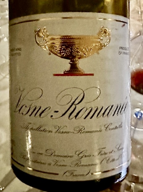 2013 DOMAINE GROS FRERES et SOEUR VOSNE-ROMANEE- blind; I struggled to get old world in this wine; it was very fruit forward, even after 15 minutes or so in the glass, and it did not seem all that good to qualify for the few that I left for tasting much later on; it had wild red cranberry aromas, but a sweetened black cherry taste and finish and just needs more time to evolve, mature and come together probably with a good decant.