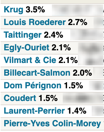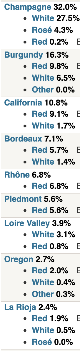 I would’ve expected more than 1/3 champagne in your cellar given how much you drink! Mine is ~45% champagne.