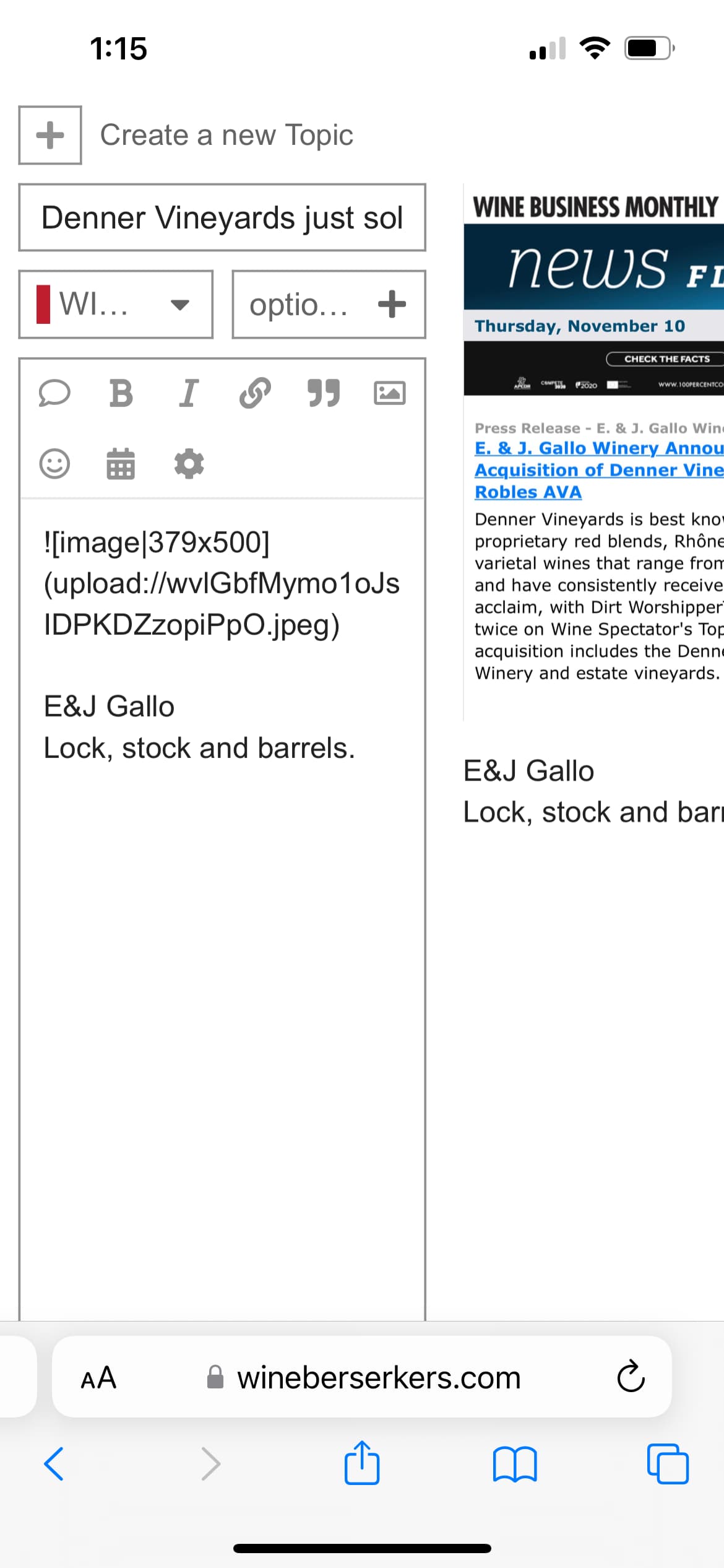 I’ve never seen this, can’t replicate it - what’s that wine business monthly article on the right? The image? If so, it’s showing in preview - you have it in desktop view, you goof. You are on mobile, have it on mobile view:
