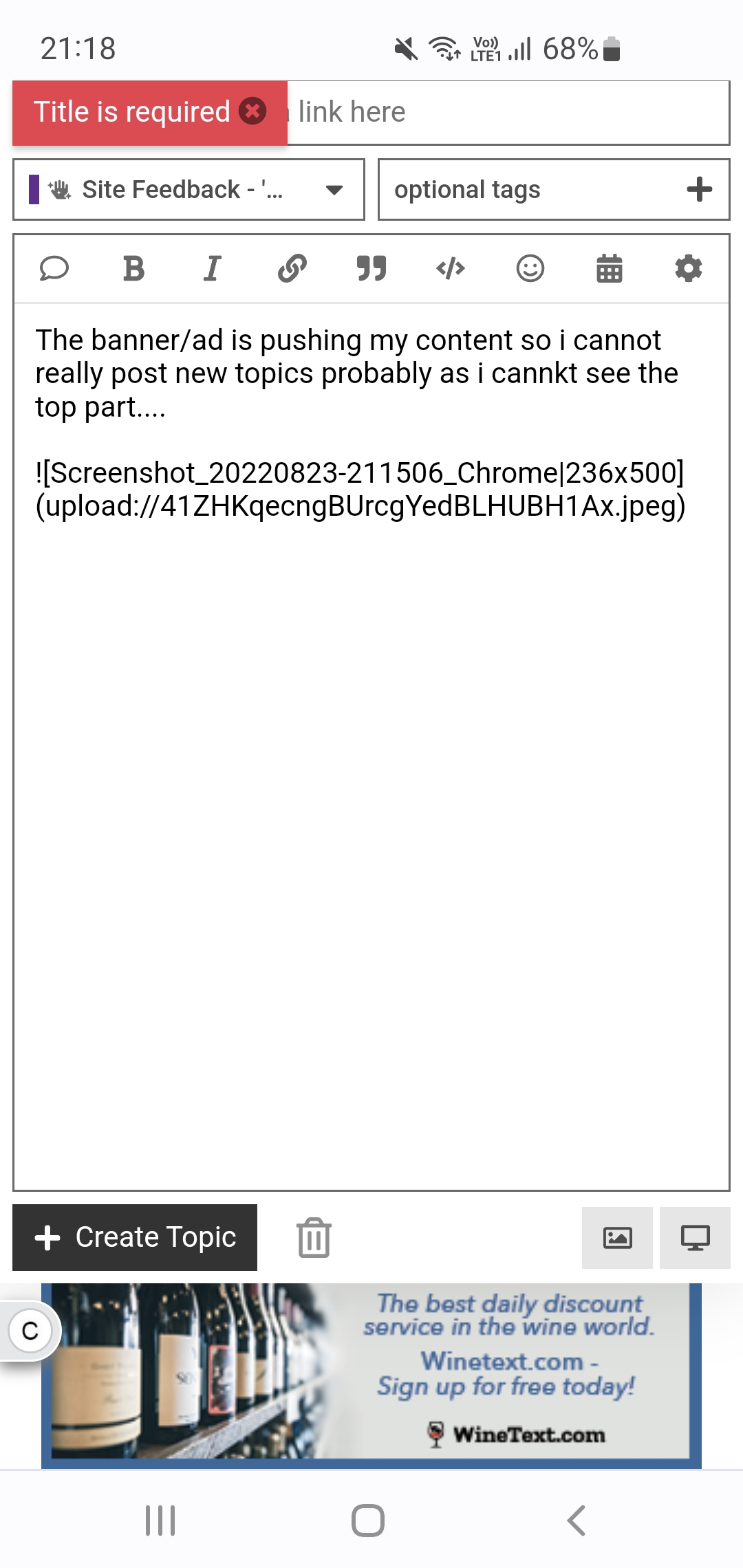 The banner/ad is pushing my content so i cannot really post new topics probably as i cannot see the top part…