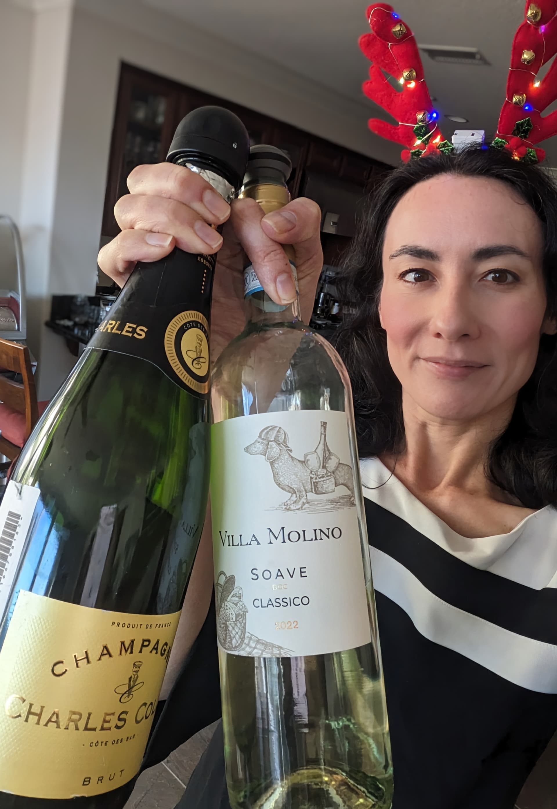I needed wine to make a tarragon mustard sauce for Christmas Eve and didn’t want to sacrifice a bottle out my collection because the sauce takes 1.5 cups of wine. I was at Trader Joe’s picking up last-minute ingredients and grabbed this Soave instead of my usual $7.99 white Bordeaux (can’t ever remember the name) for cooking. The Villa Molino was $5.99, and I wondered whether it would be drinkable.