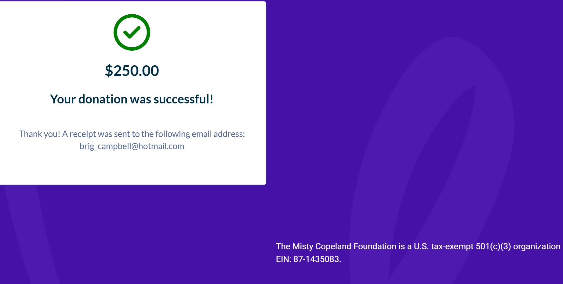 Donation made to Misty Copeland Foundation! Per John’s request the donation is in memory of Louisa Cabot.