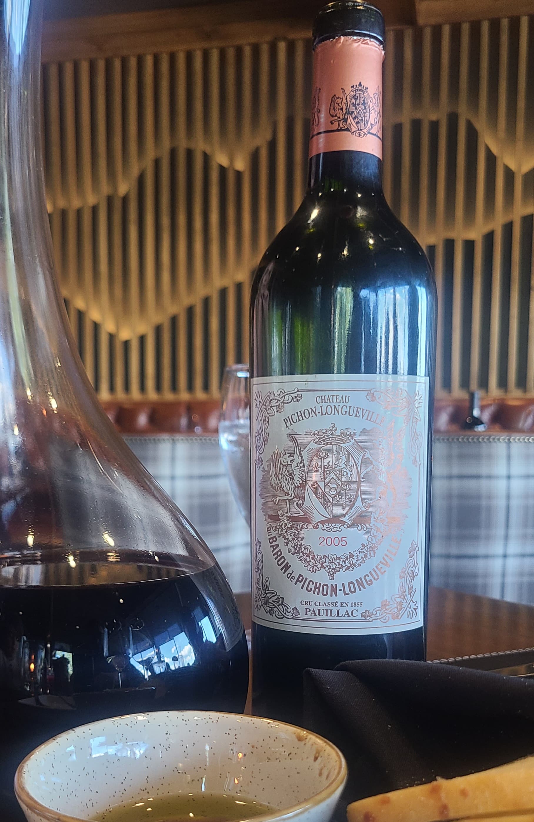 2005 Pichon Baron - big, powerful, lush, very ripe, a pleasure to drink now but not showing any classic aged Bordeaux complexity