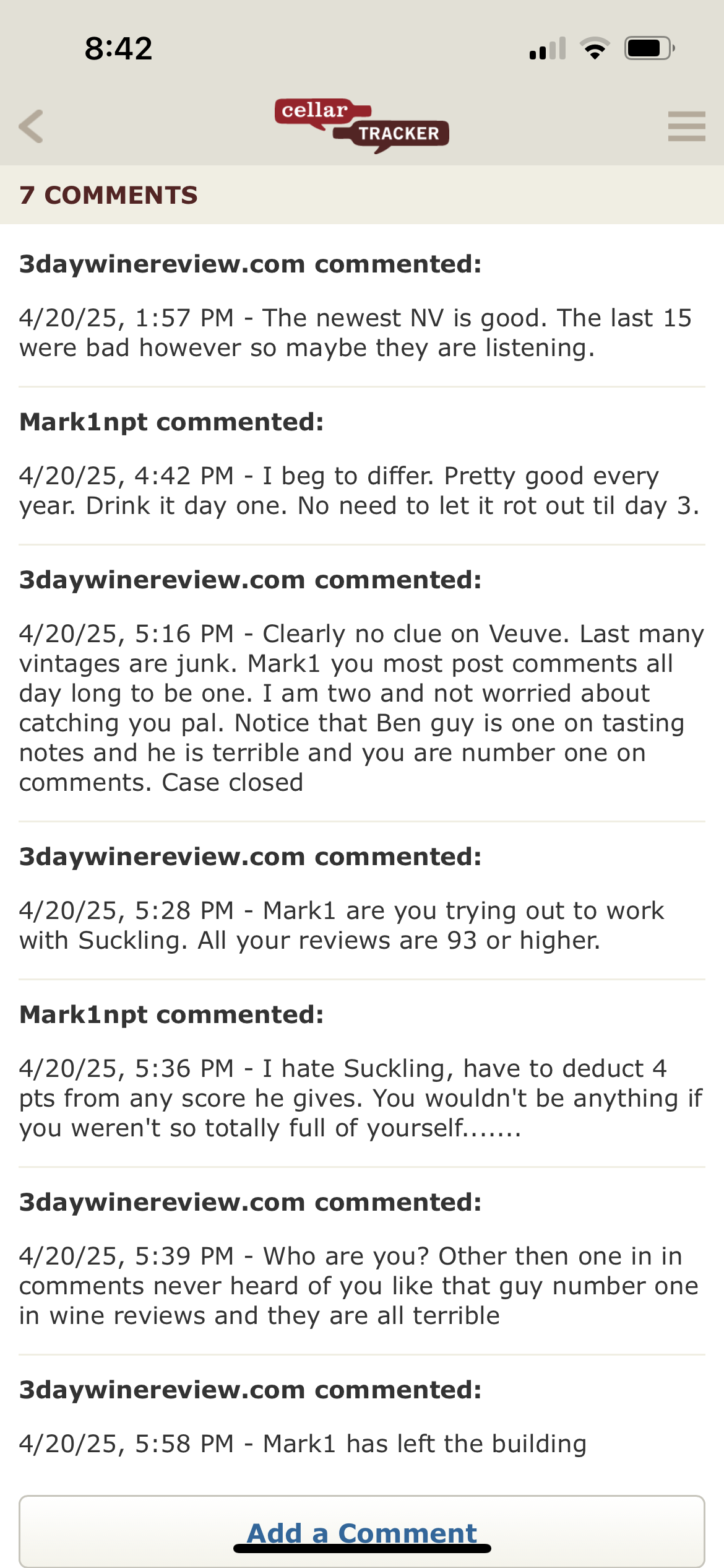 I had the same experience - finally just blocked him. He was upset that I rated a particular wine at around 89, and then that I rated a Bedrock Syrah higher.
