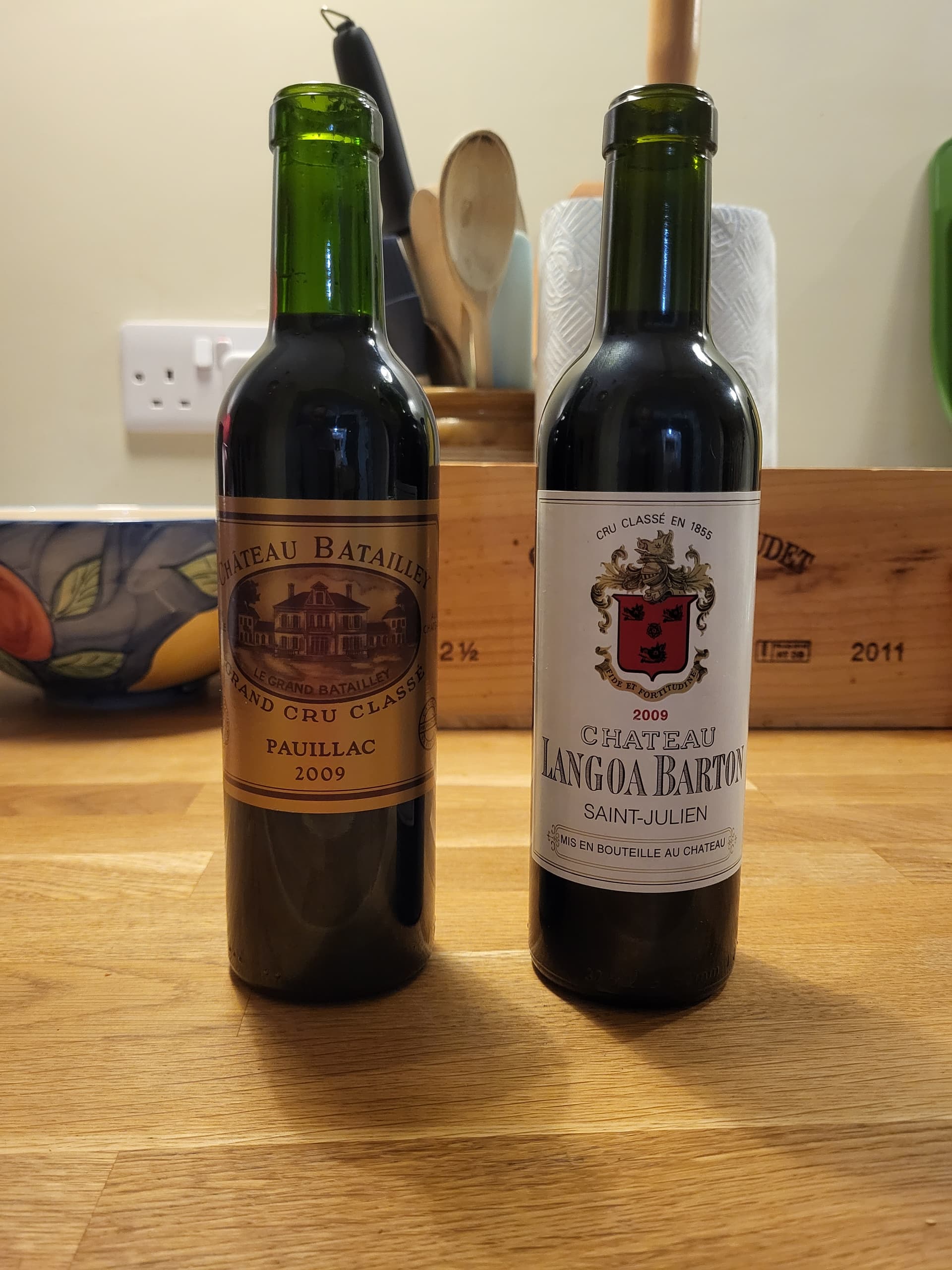Batailley and Langoa 2009 from half bottles this evening. Both were enjoyable but the Langoa was better with a little more acidity and fragrance.