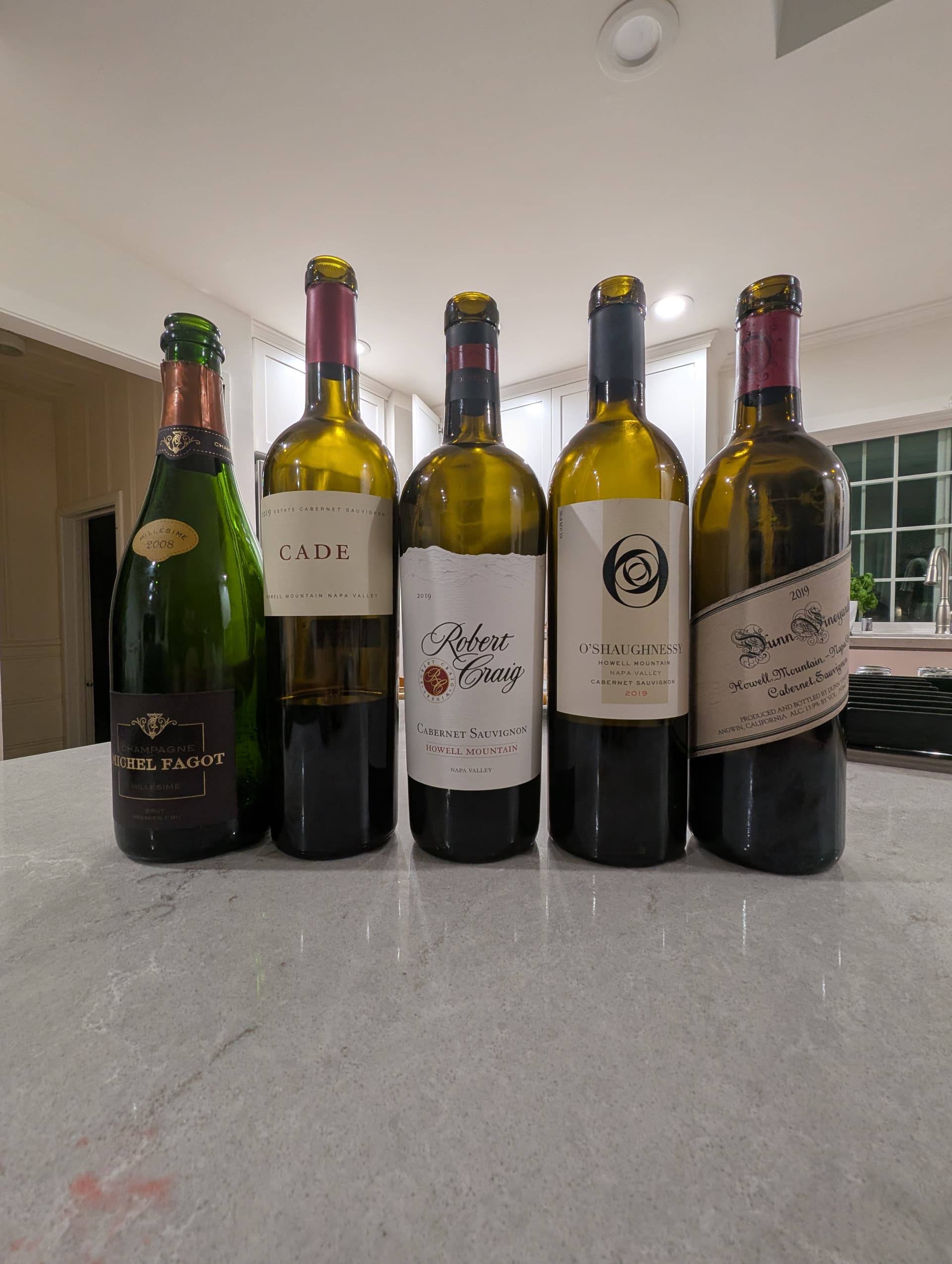 Second annual wine night with friends, and this year’s theme was 2019 Howell Mountain Cabs. Friends provided the champagne for an opener.