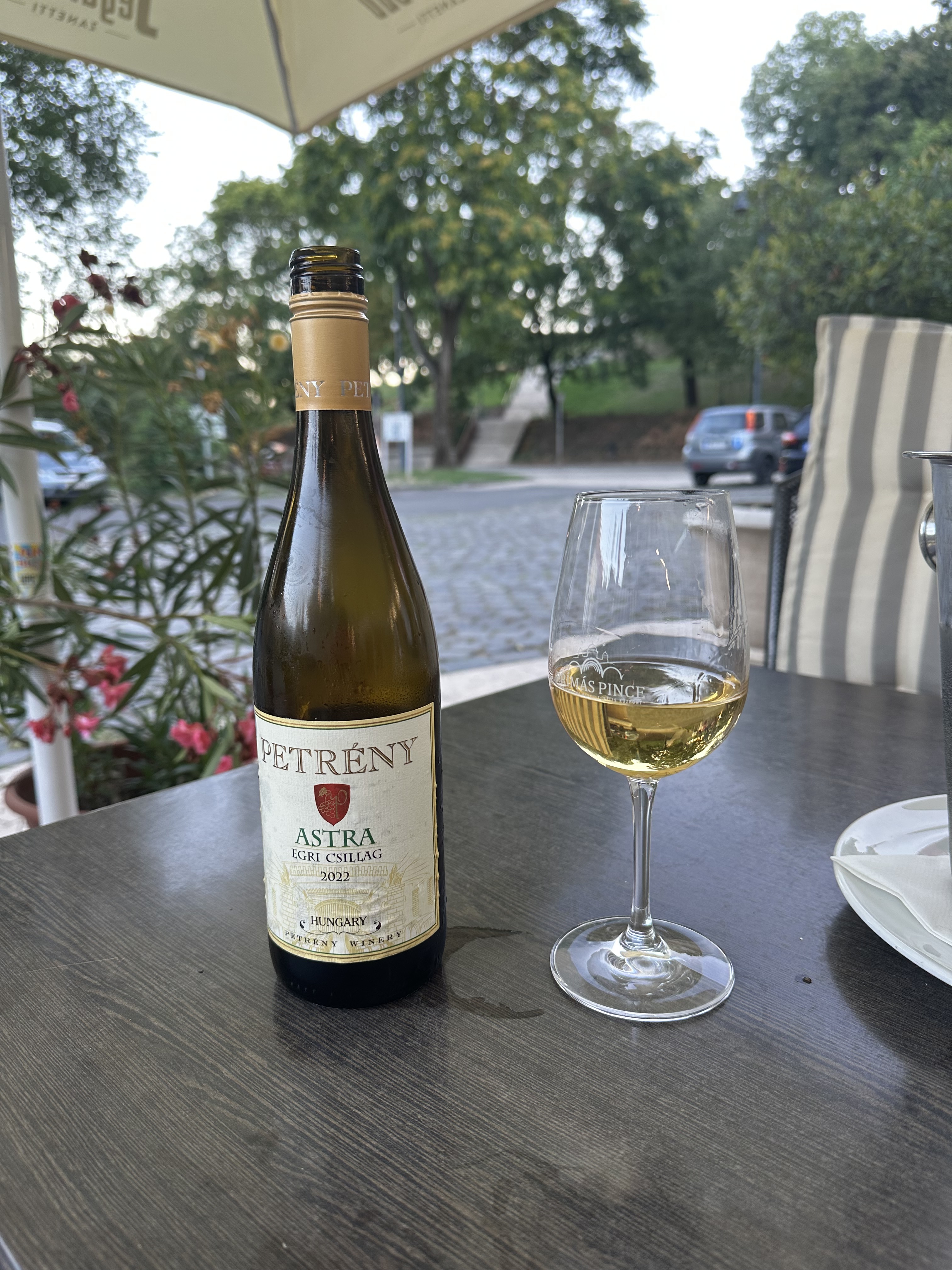 On holiday in Hungary - a nice Egri Csillag, blend of Chardonnay, Sauvignon Blanc, Olaszrisling and Hárslevelű. Quite rich with stone fruits and honeysuckle with a nice finish.