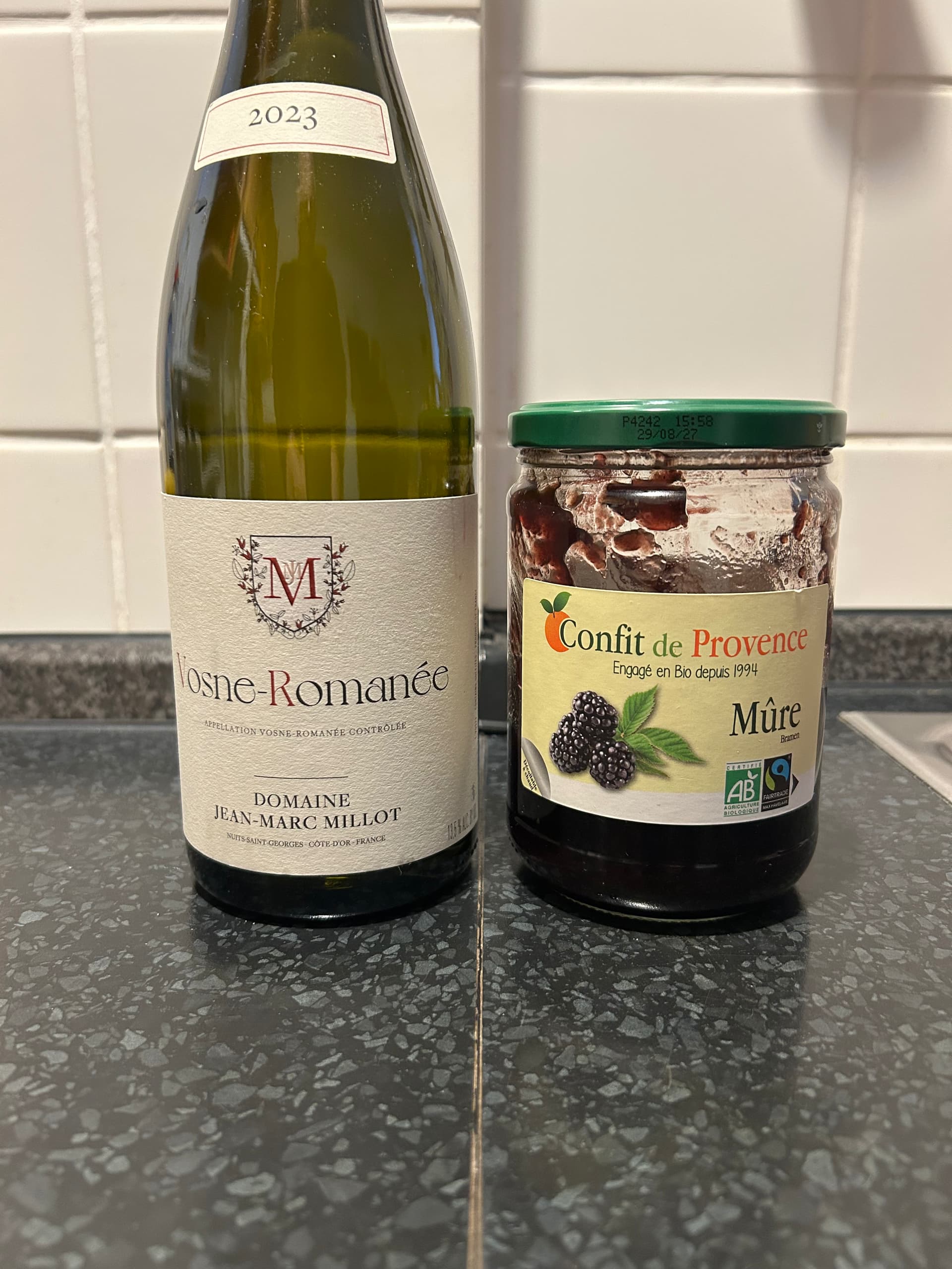 2017 Bouchard Montrachet. Definitely showing very youthful and a bit tight under Diam 10. But showed real power and depth and length. Great with roasted potatoes.
