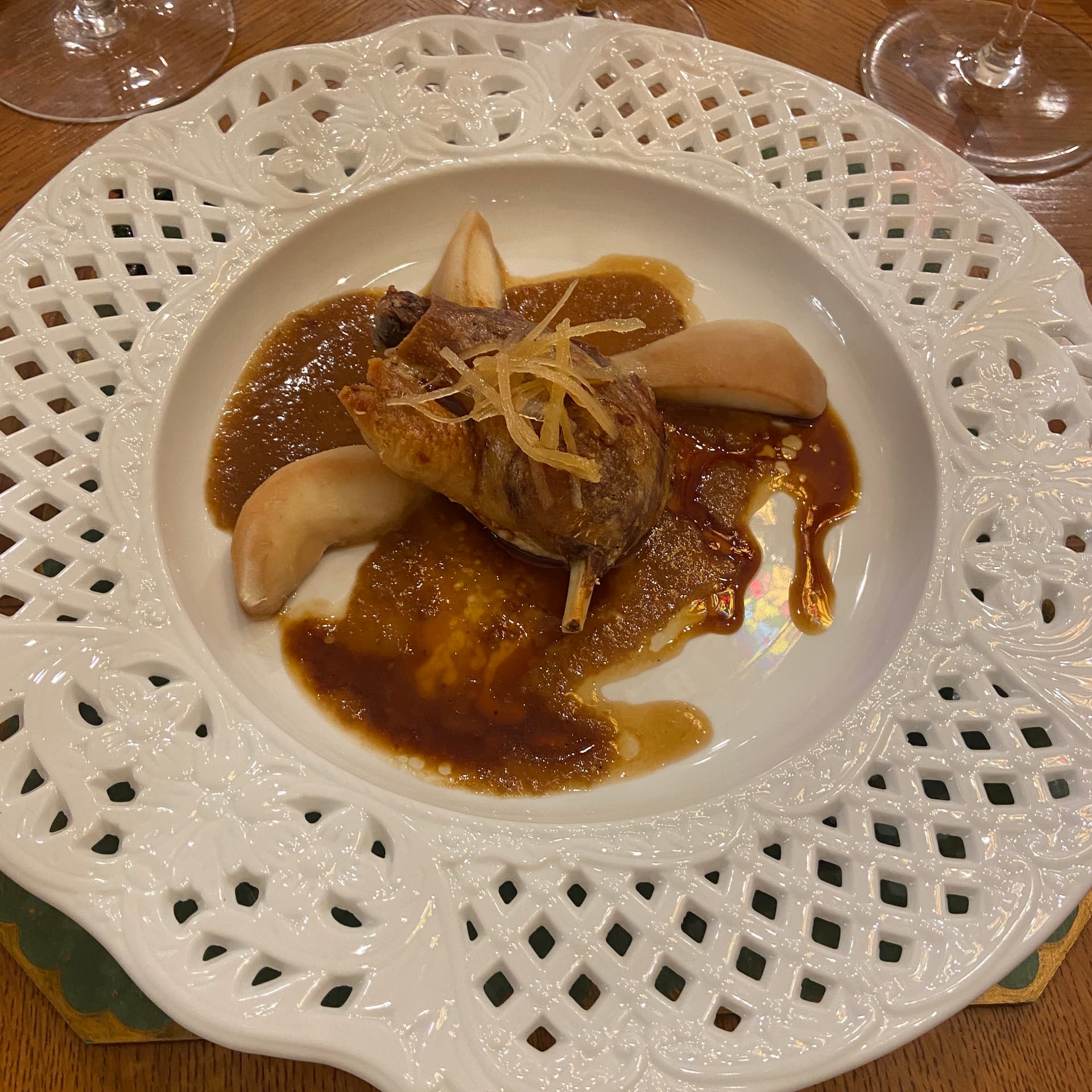 1978 Montrose - First time I heard someone pronounce this winery correctly (to be fair I dont pronounce it correctly even knowing) A bit darker and more concentrated than the Gruaud Larose. Still showing a bit more fruit too, but also I think this would have shown much better with 7-10 hours of air. Pair well with the duck confit.