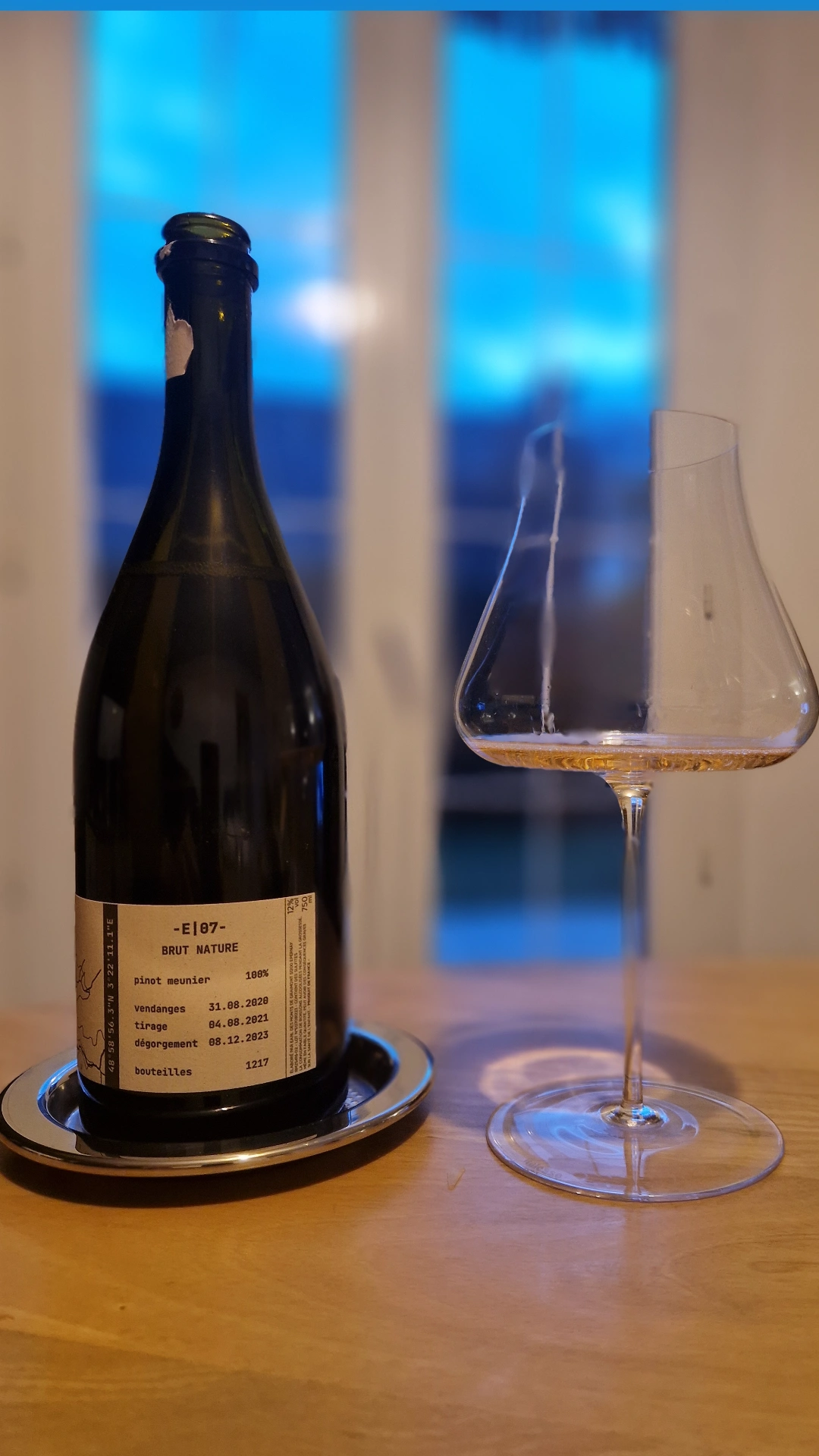 Tom Gauditiabois ‘Exploration E|07’: 100% Meunier, Base 2020, disgorged Dec 2023. Only 1,217 bottles. Total transparency here, zero dosage and high tension.