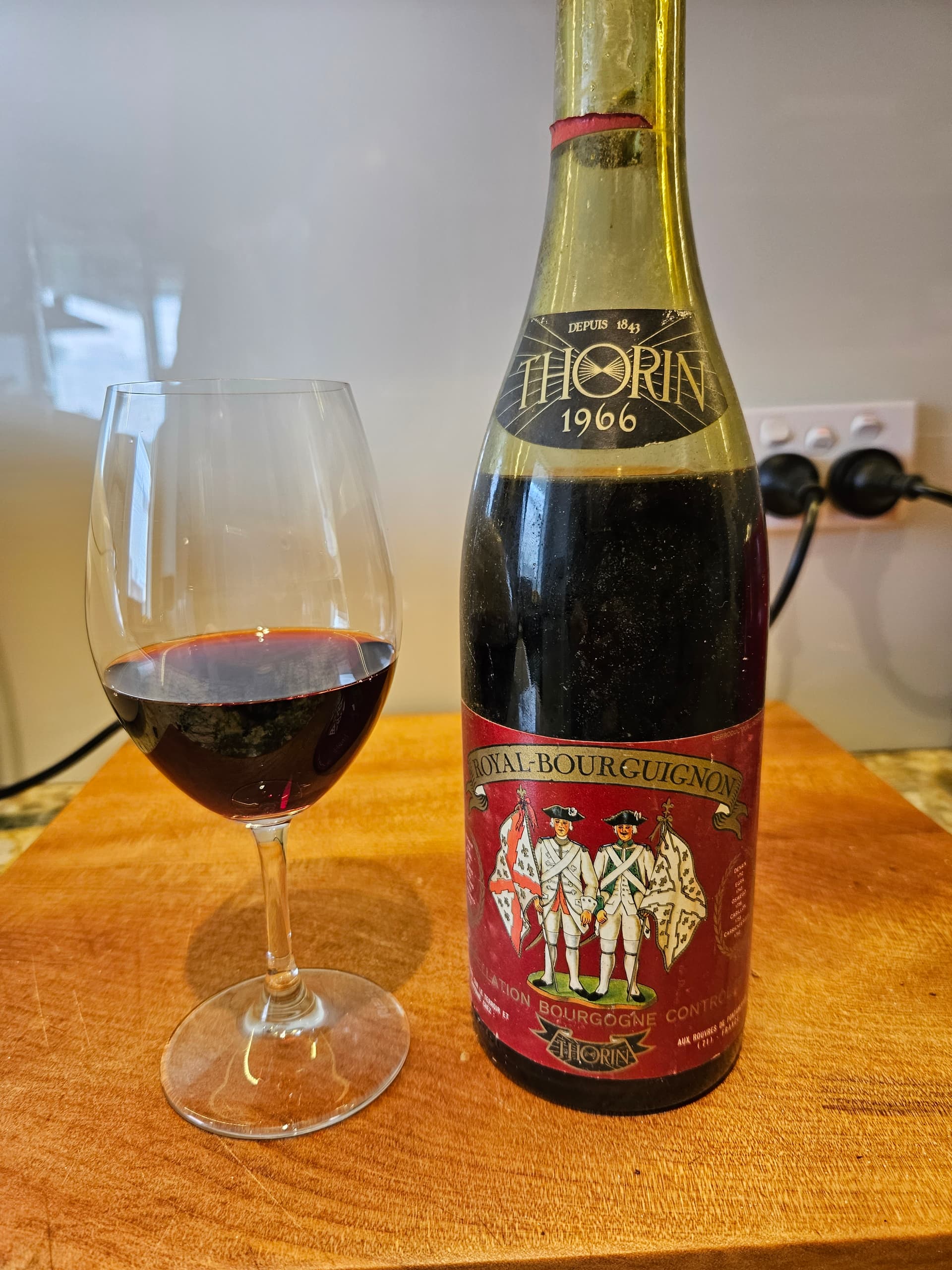 A random auction purchase about 2 years ago. Good fill and very good colour. A 57 year old Bourgogne Rouge.