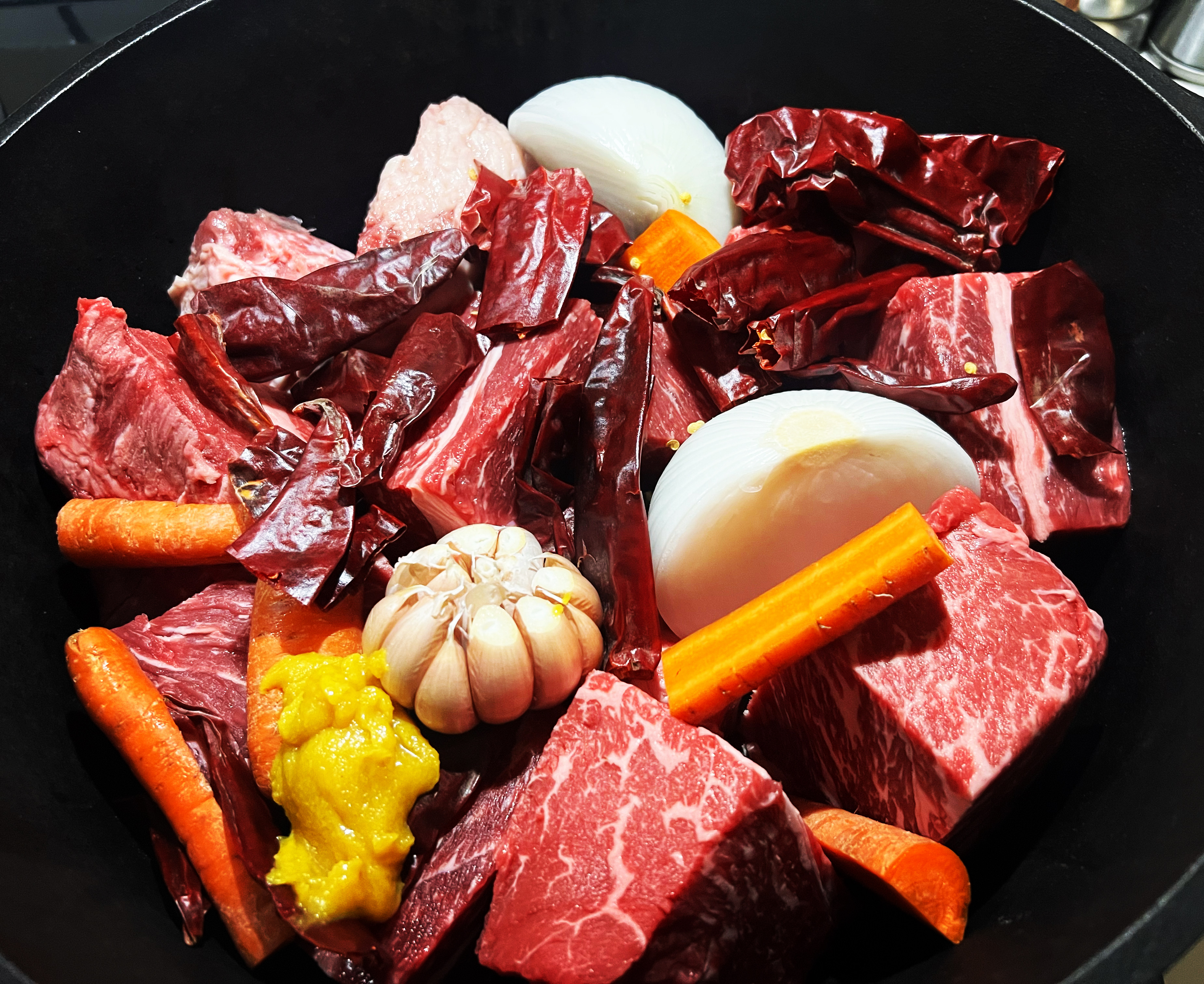 4 lbs chuck roast cut into 4 large chunks