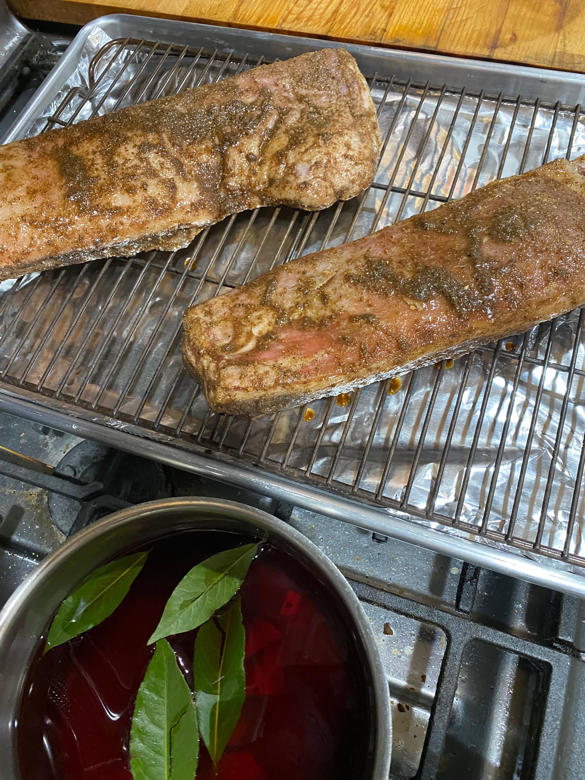 Must be that time of year for lamb. I made a lamb breast with a cumin rub and sautéed celery, peppers and mustard greens.
