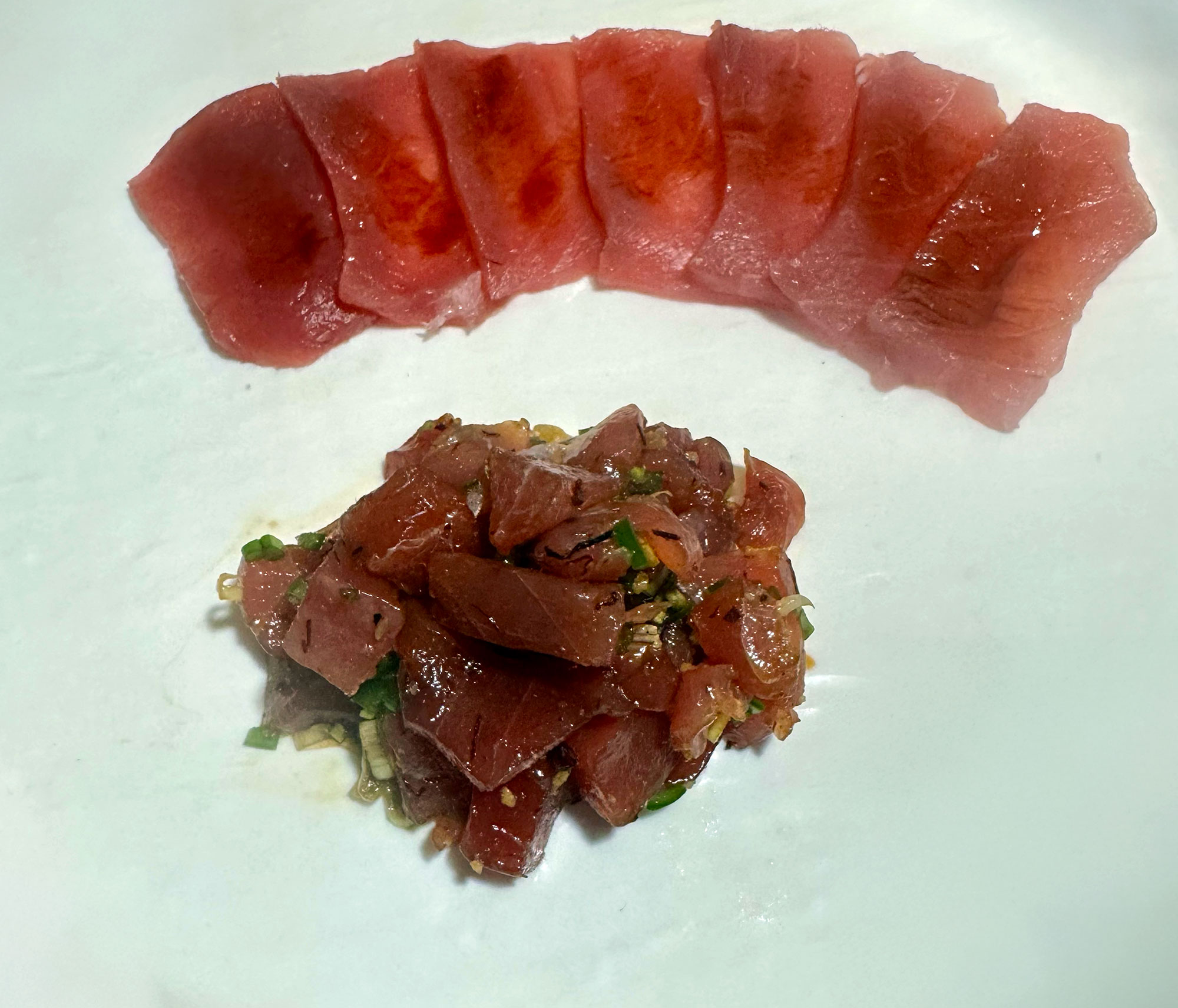 Sliced some prime grade ahi and brushed with soy, and made some spicy poke with the end pieces.