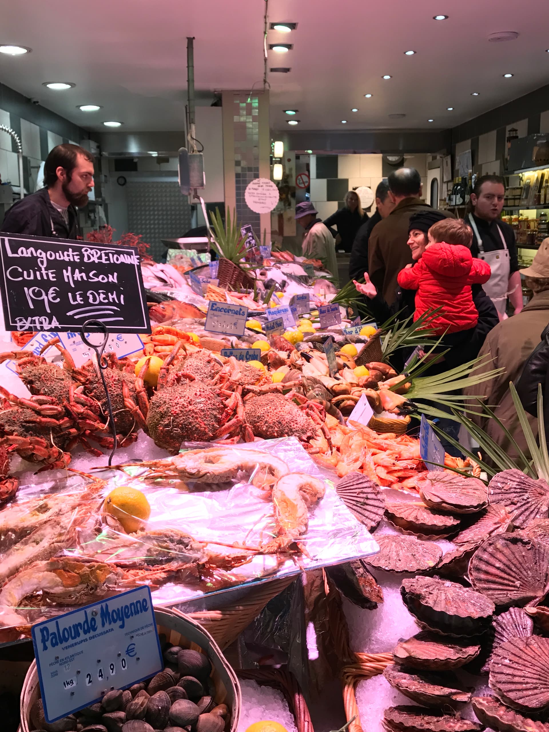 - salt-crusted striped bass: this book was the first time I saw this technique and we cooked the hell out of it when we lived in Paris, as I could pick up fresh branzino from my fish guy on the way back from walking the kids to school (see pic of my wife explaining the recipe below)