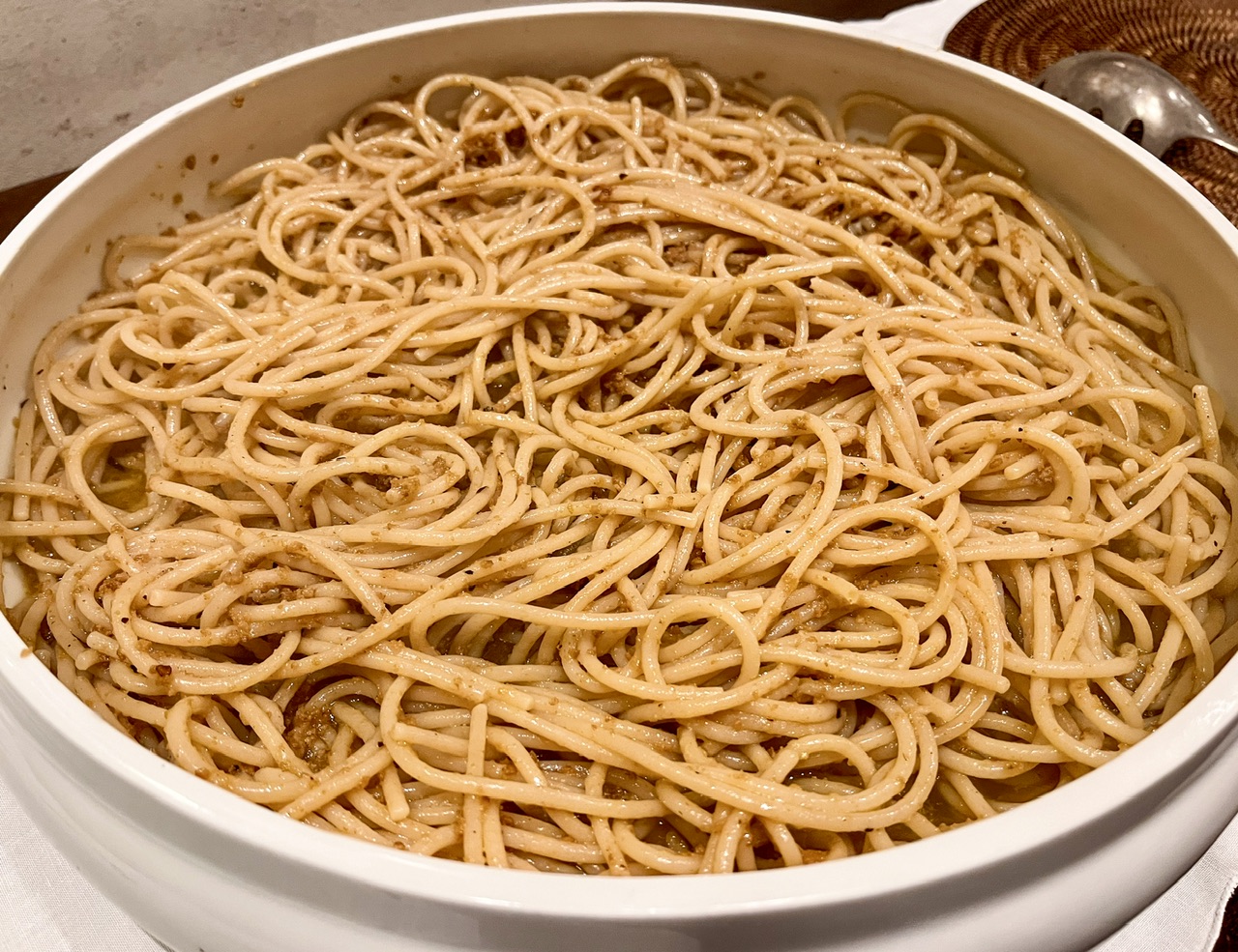 Tonight was my wife’s turn to host her weekly mahjong group. They usually start 5ish with pica-picas & a lot of casual bottles of wine, and I spend the evening with my friends at our neighborhood golf/country club. This time, though, I stayed home and cooked a pasta and meat course for them for dinner proper.