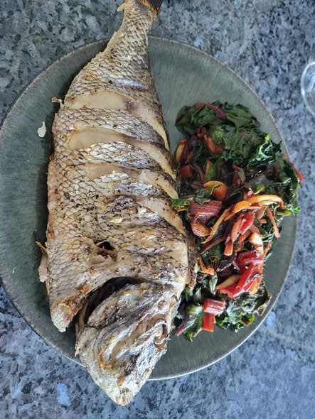 Roasted Porgy stuffed with lemon, rosemary and thyme