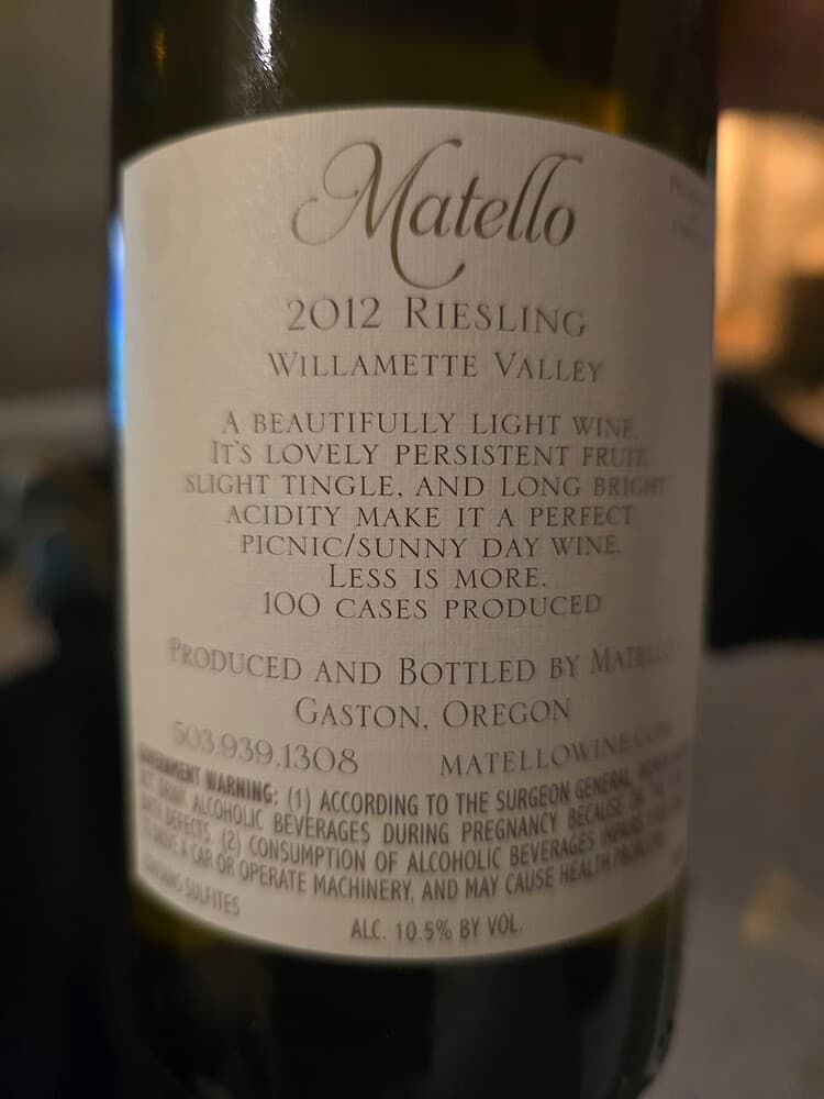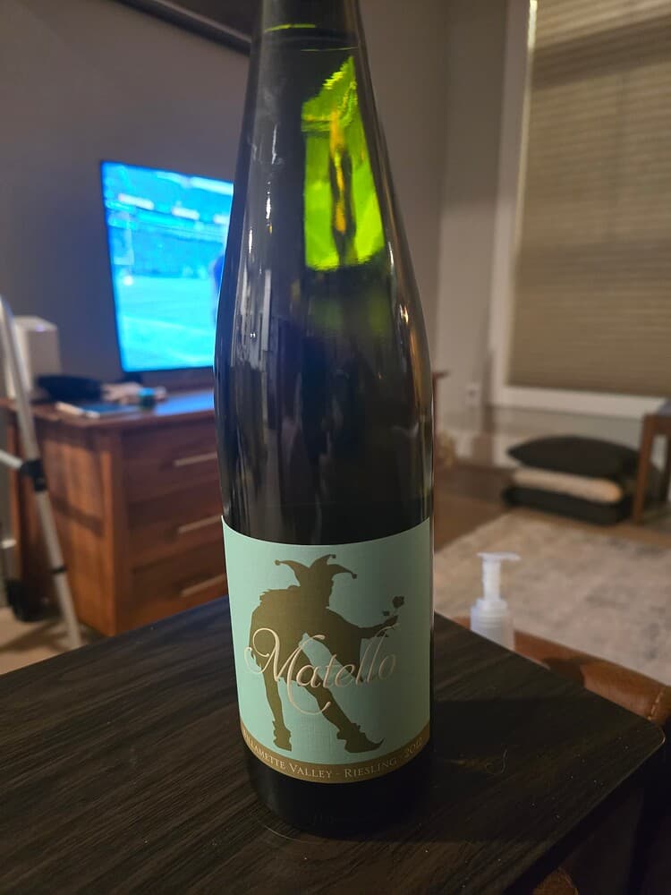Celebrating the Patriots big win with a bottle I’ve been dying to open since it was delivered in the fall. First impression is FUCKING A RIGHT! I need to keep this away from my wife. It’s 2012 Matello Riesling, Willamette Valley designation.