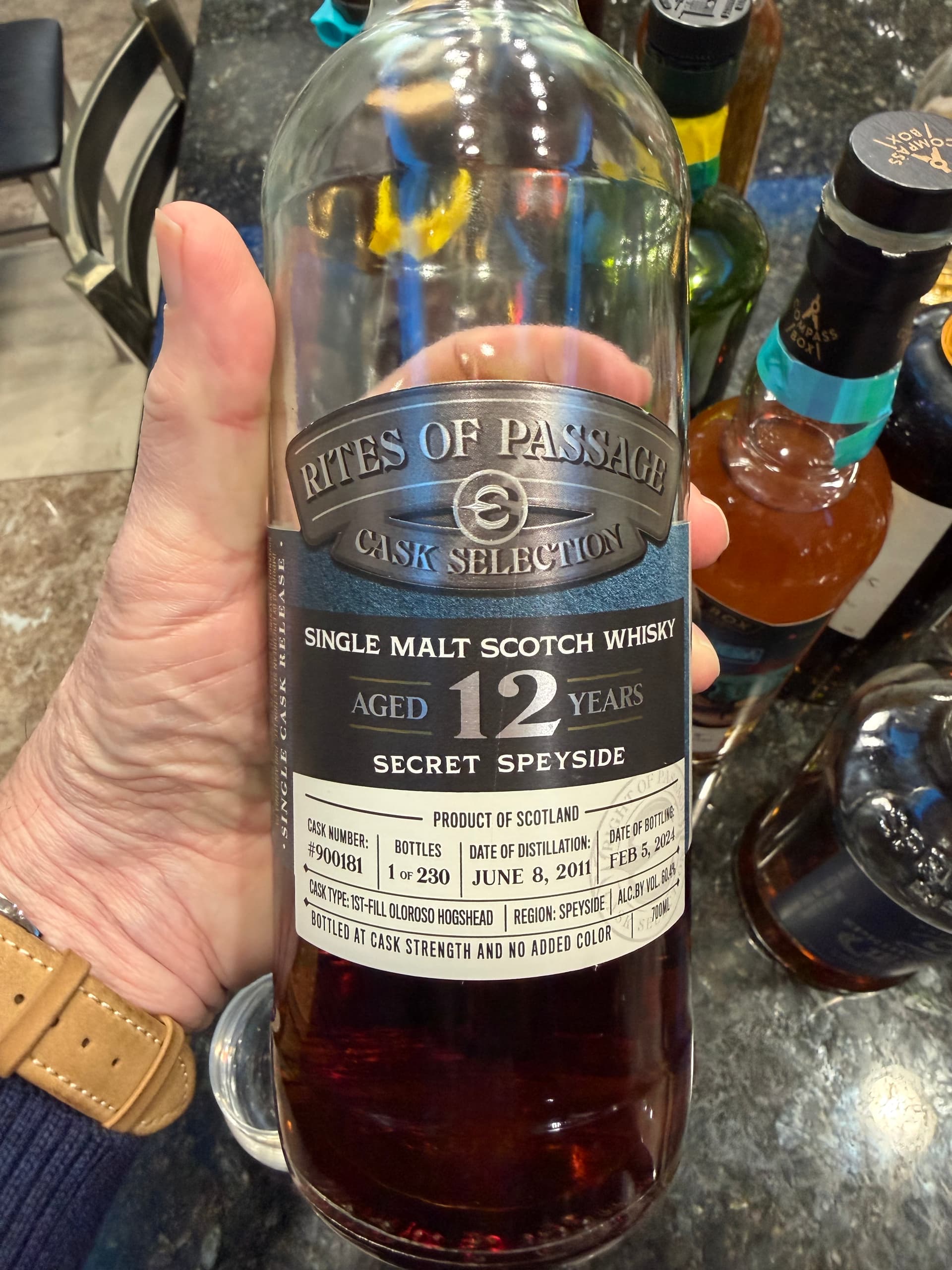 Clean sherry, spirity as a 12 year old should be, Glenfarclas I assume. I hope the owners of Rites of Passage have other similar casks that they are continuing to age. This one has the stuffing and balance to age much longer in cask.