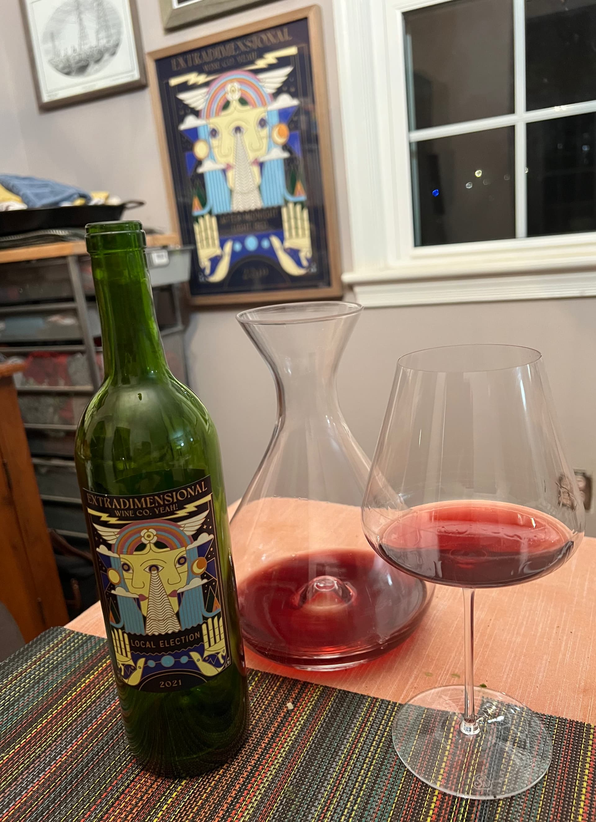 2021 Nightlight Red. 68% Del Barba Old Vine Mourvèdre, 28% Rosewood Old Vine Carignane, 4% AT Vineyard Zinfandel.