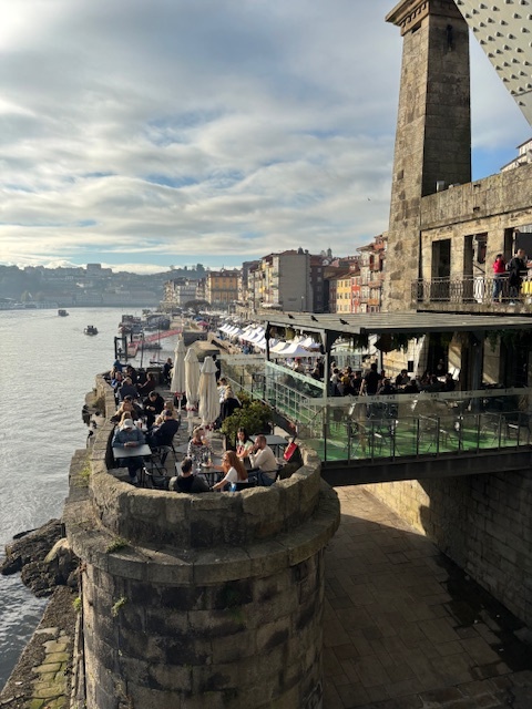 Since my wife and I had a large lunch and after-lunch Tawny Ports, and we were getting up early today to head back to Lisbon, we decided to eat by the hotel. Apparently some of the Port houses, like Taylor’s, have elegant restaurants as well. After jumping in an Uber, we chuckled when we learned Taylor’s was literally right next door to our hotel floor side entry! I’m taking this pic right now out of that side entry on the terrace: