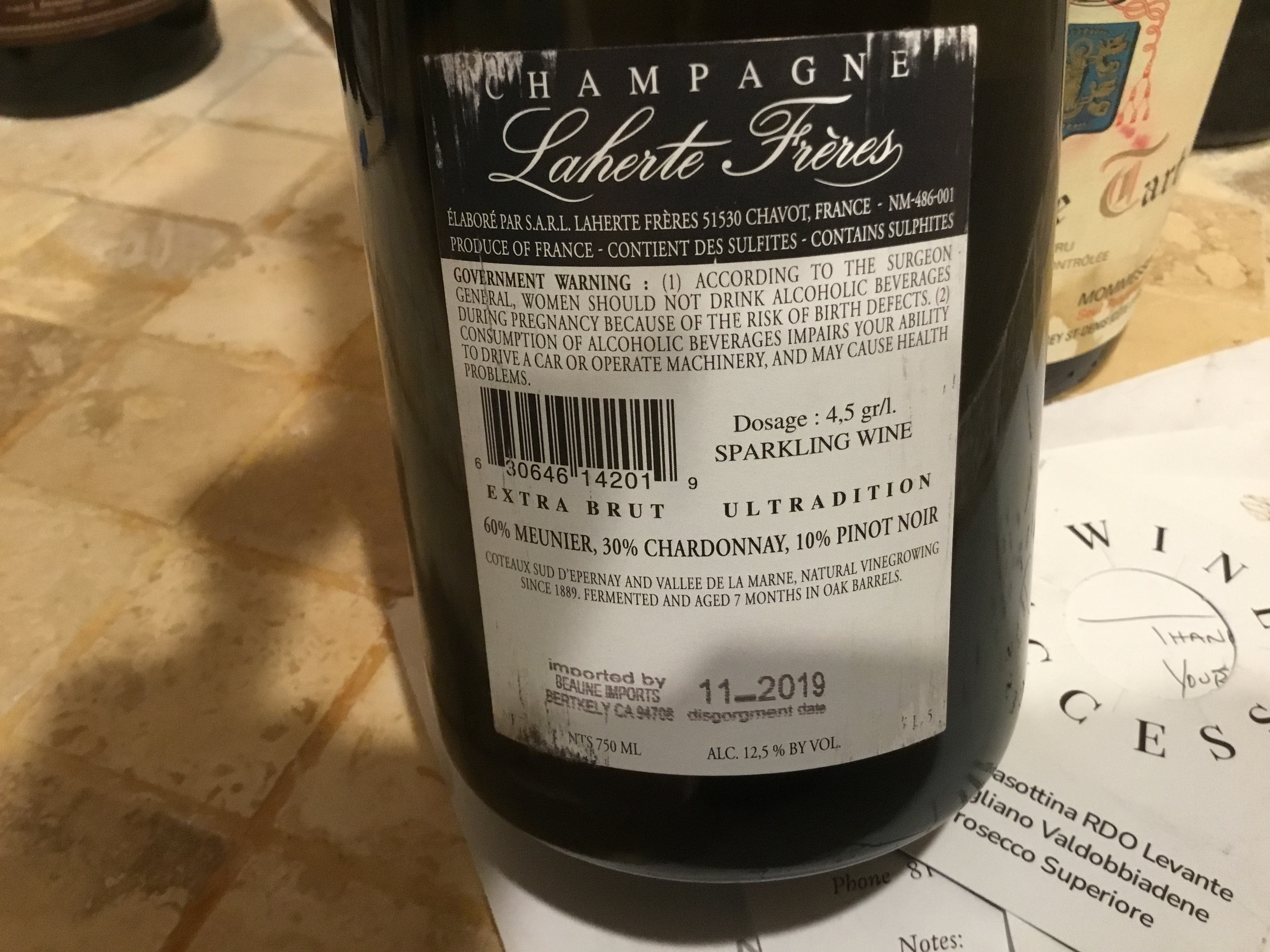 For clarity, the Laherte Freres Extra Brut Utradition bottle I tasted this week, wrote up and what I am buying today (with some of the other dorks who were at the table with me) is this one: