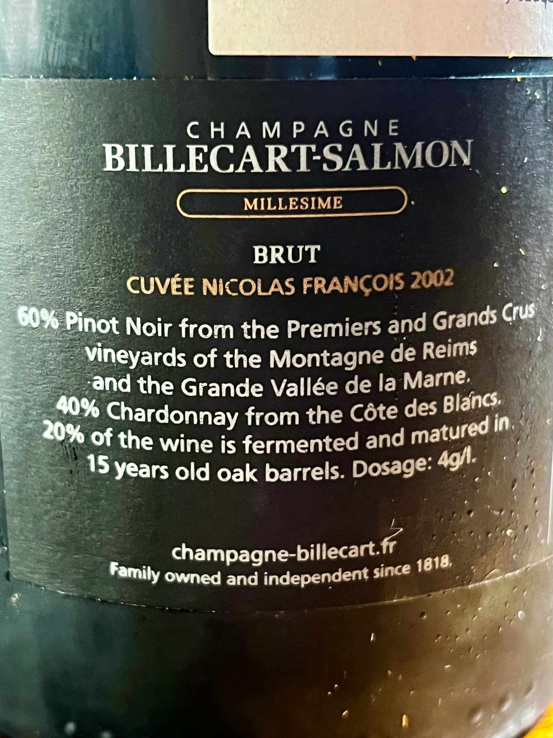 2002 Billecart-Salmon Champagne Cuvée Nicolas François