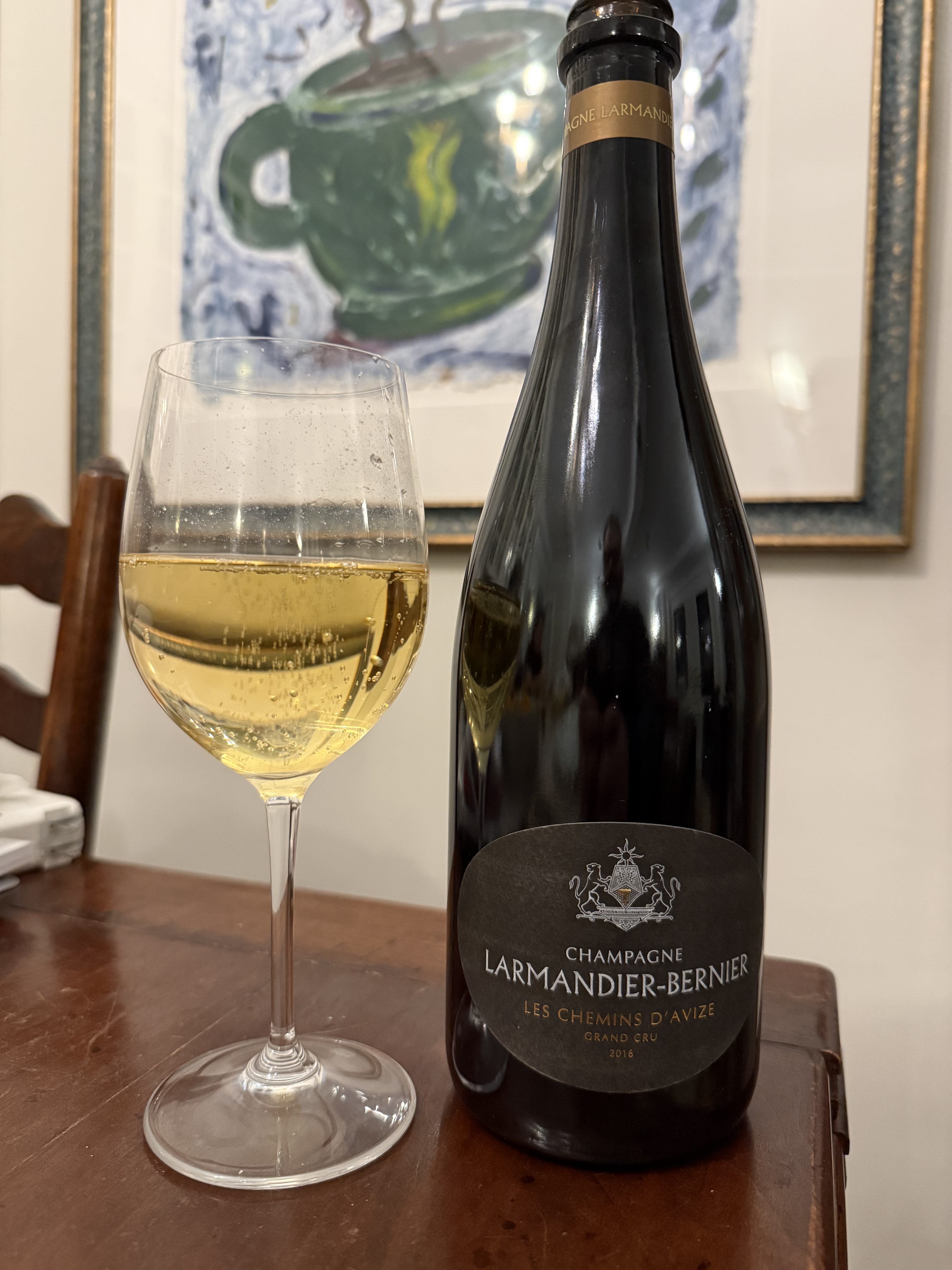 2016 Larmandier-Bernier Chemins D’Avize. A lovely rendition of my favorite cuvée from the house, but it definitely needs to be chilled to proper temperature around 40-45 F I’d say as it’s a tad richer than say 2012-14. Coconut cream / lime / ginger / green apple notes, vibrant, palate-staining and long.