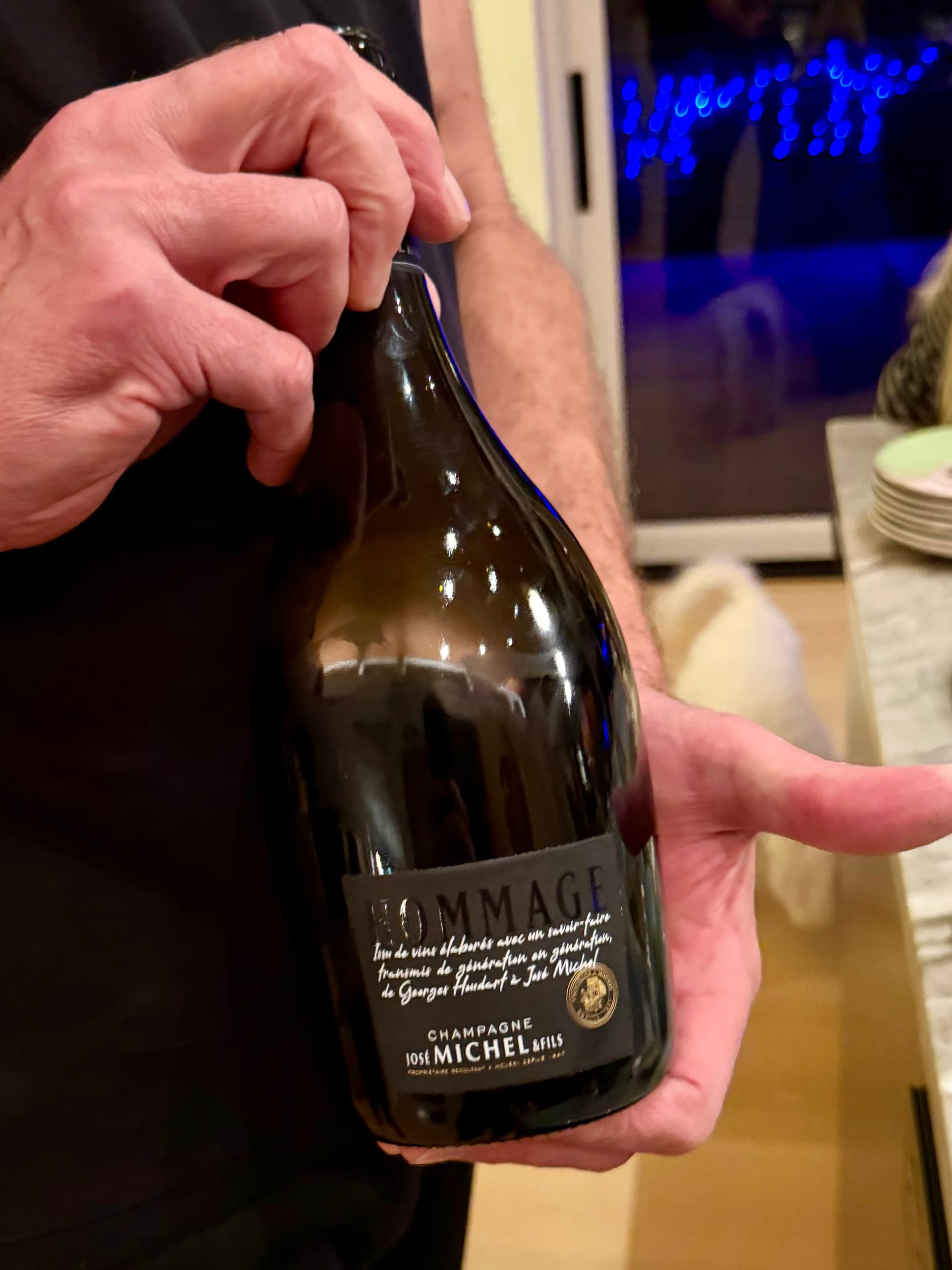 Here’s a funny story about this wine. This June I hosted a Champagne tasting on our deck, with several board members and a number of seasoned collectors in attendance. The biggest surprise of the night was a NV José Michel Hommage, which showed spectacularly. I’d always liked José Michel for its value, but this was the first time the wine truly impressed me. It was a different level, and on the list of the top wines from several attendees.