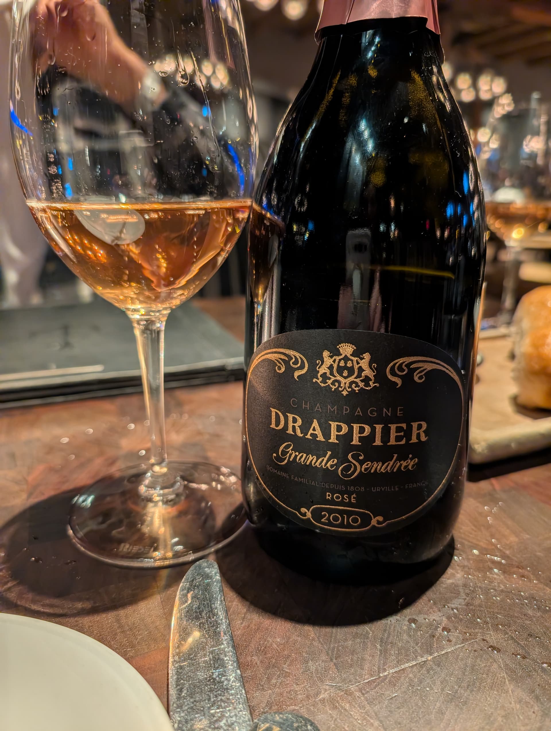 80% PN, 20% chard, 4g/L dosage. Beautiful salmon pink color that is not reflected in the picture (bad lighting). Classic brioche nose, and something vaguely floral. Raspberries, strawberries, yellow peach, blood orange, long finish. Nice balance between acidity and fruit. Don’t have much of a description unfortunately, but I enjoyed this Drappier much more than the Gratien.