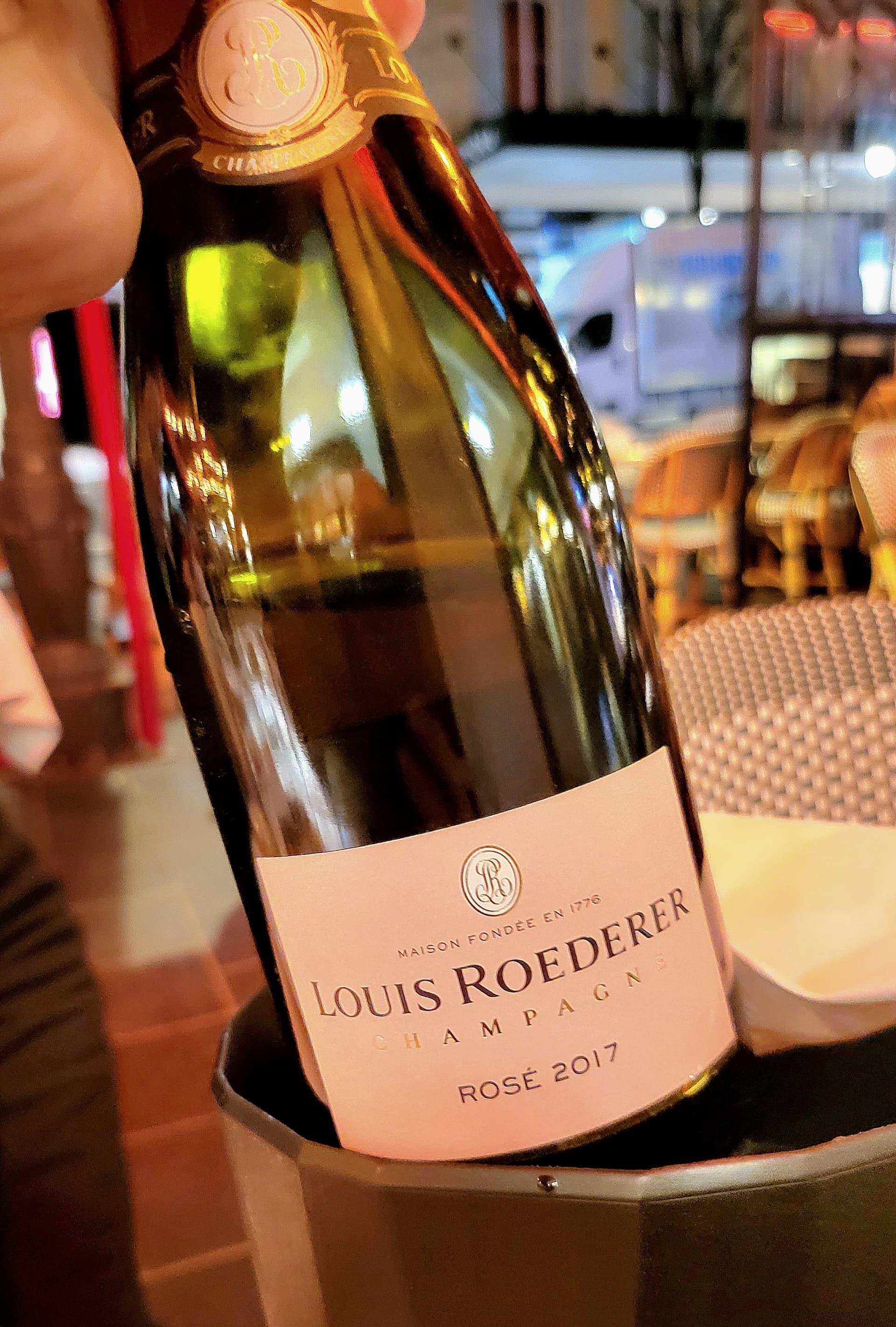 First night out in Nice and we started with a bottle of #2017 Roederer Rosé. Perfect with oysters and foie Gras.