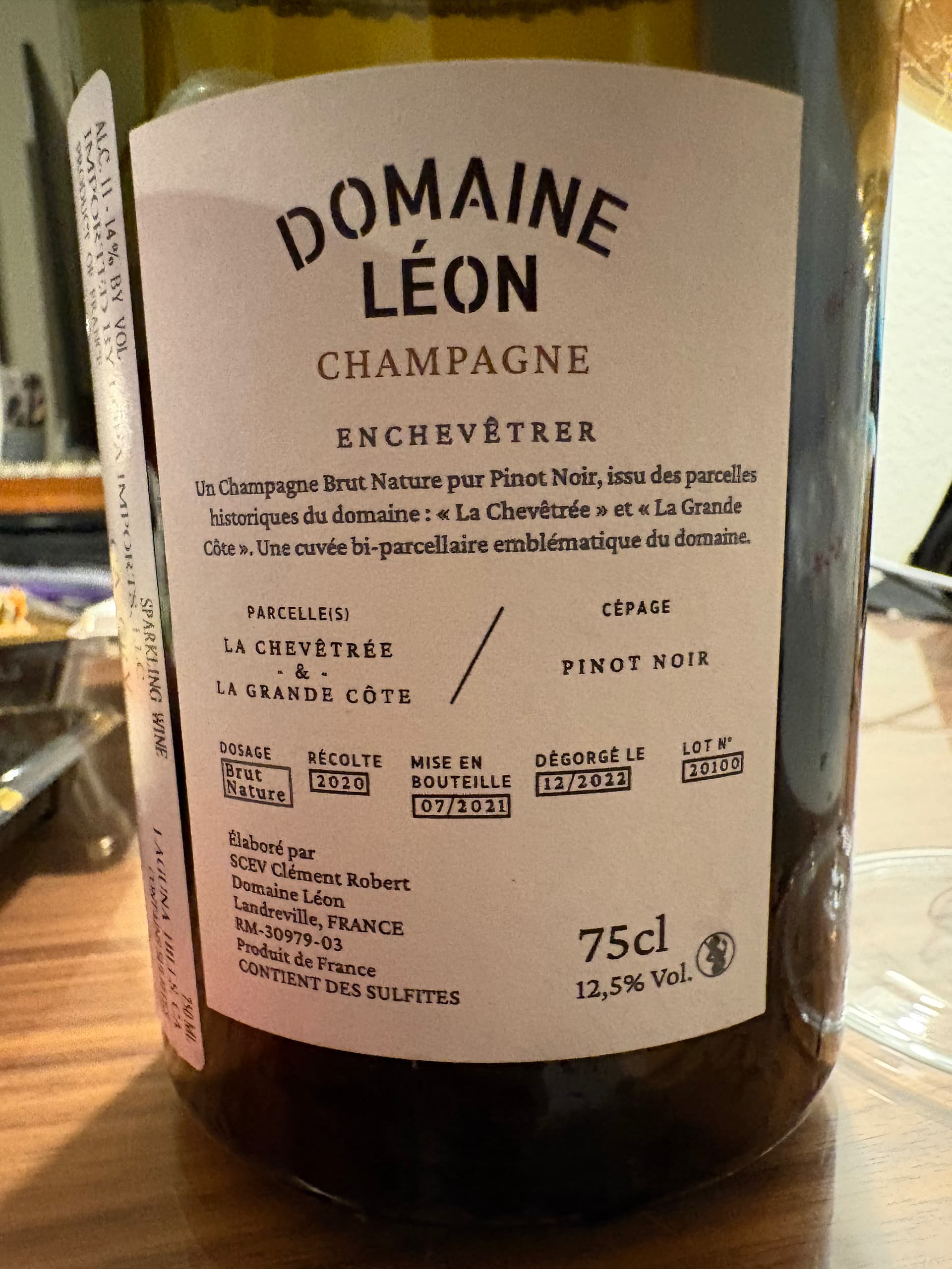 2020 Domaine Leon Champagne Brut Nature Enchevêtrer - France, Champagne (1/29/2026)