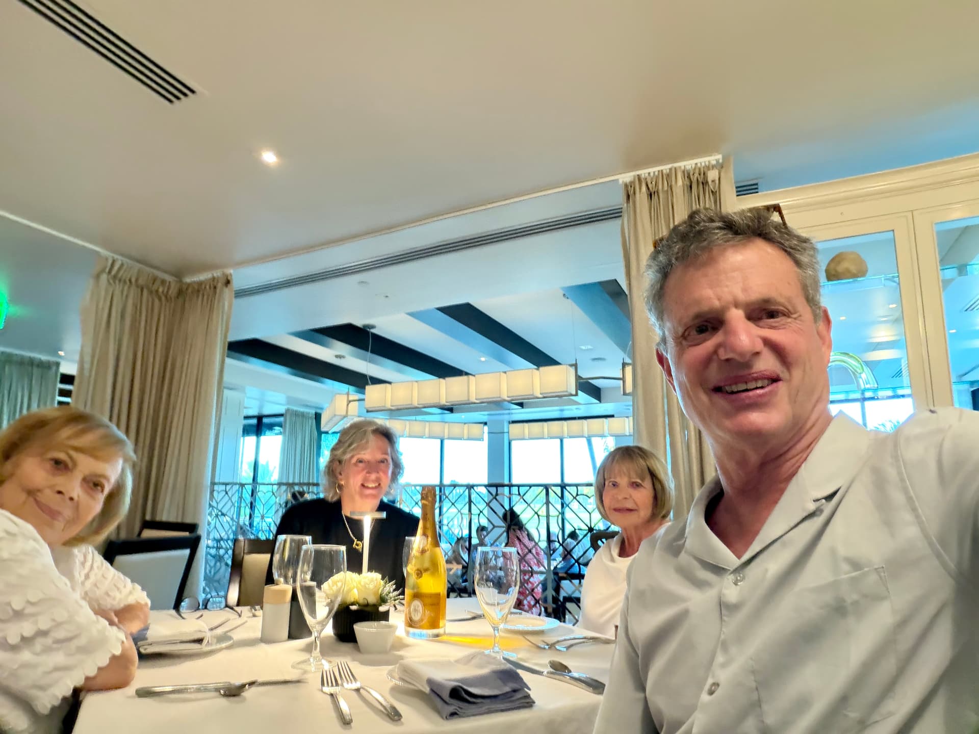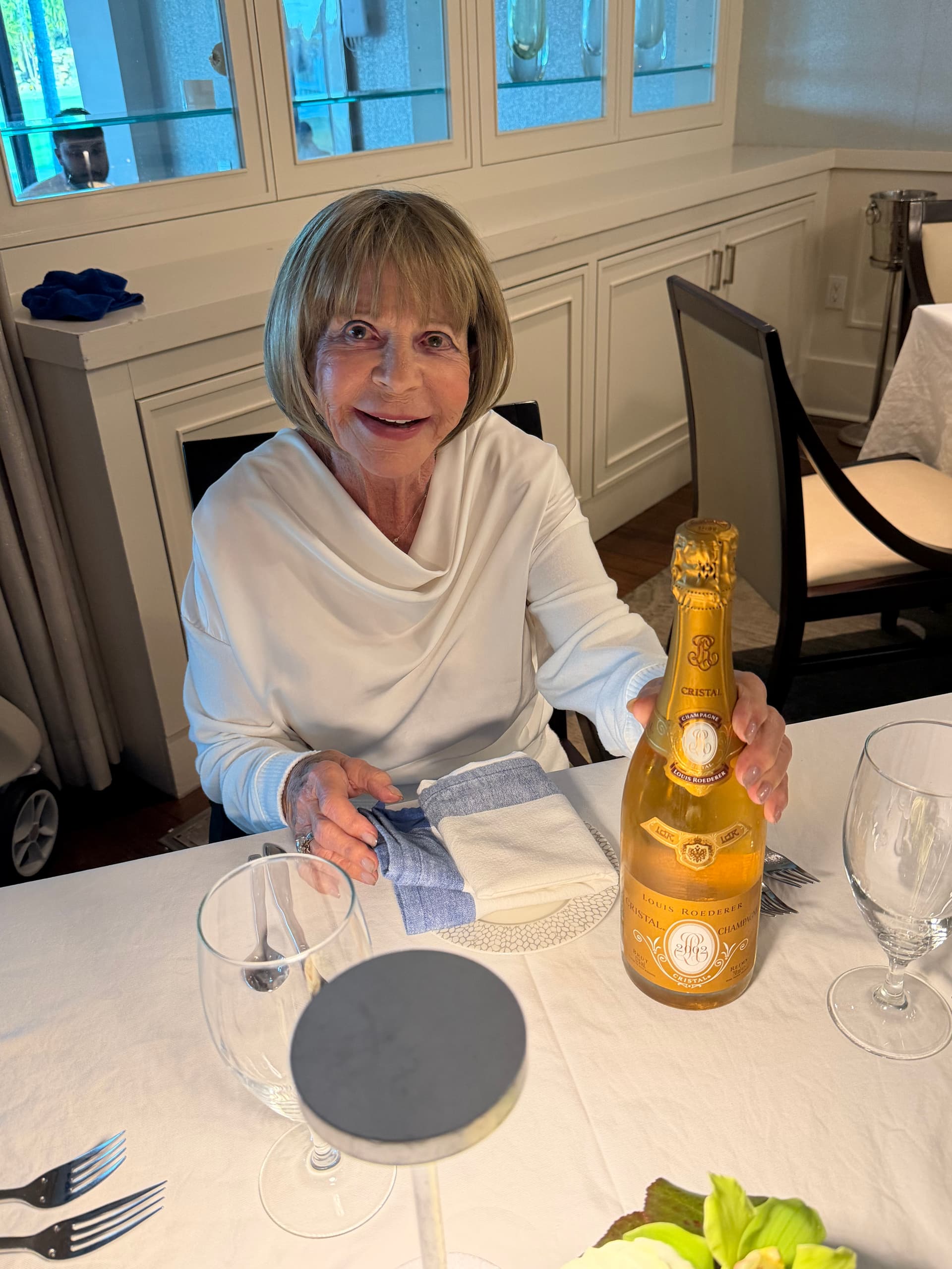 Marybeth and I went to dinner with my mom and her older sister, my Aunt Arline, 94 and 96. I’d opened an otherworldly 2002 Cristal for Marybeth’s birthday last week and decided to try another with the young ladies.