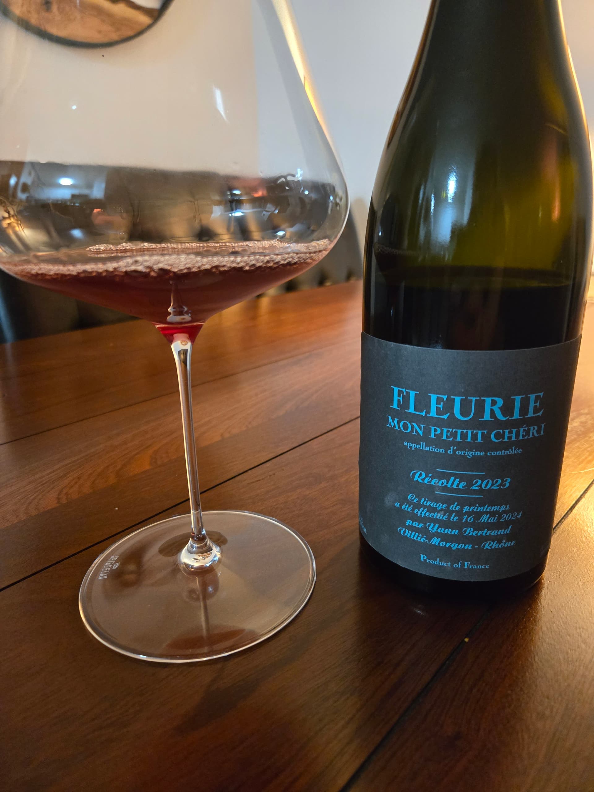Opened Yann Betrand “Mon Petit Cheri” Fleurie 2023 today, first time with this producer. Really lovely…if you like Lapierre, you will enjoy this. Intense carbonic nose of strawberry, rose, and light banana, with some menthol/eucalyptus overtones. Palate is fresh, moderate acidity/moderate tannin. This is sort of a “thinking man’s” pop and pour Beaujolais. I do love the style of fresh, unfiltered, unsulphured, and textured while also being balanced. It’s a bit dear at $45.
