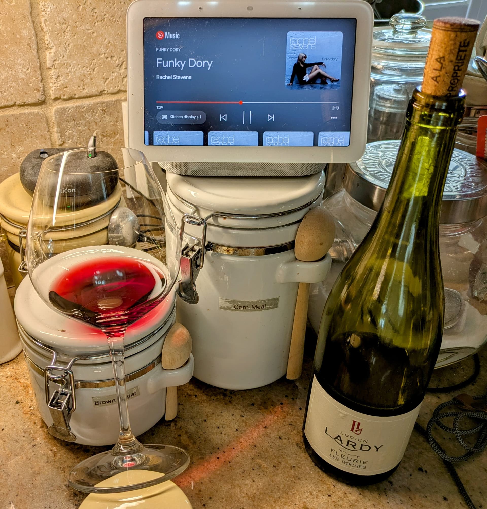 It has been triple digits temperatures locally, so my usual husky reds have been sidelined in favor of lighter varietals, which led to the 2021 Lucien Lardy ‘Les Roches’ [Fleurie] being opened on the young side. It’s 13% abv and closed with a short agglomerated cork. The grapes come from a plot of 60 year old vines on granite. I find it to have an earthy, structured, relatively tannic feel with thyme and nori on the nose. This savory gamay doesn’t have a commercial/popular vibe. Perhaps it would appeal to WB more than the mass market, but it’s not in my wheelhouse. I don’t pay much attention to vintages in this region, but perhaps classic cool years are not for me. Overall, a B on my card.