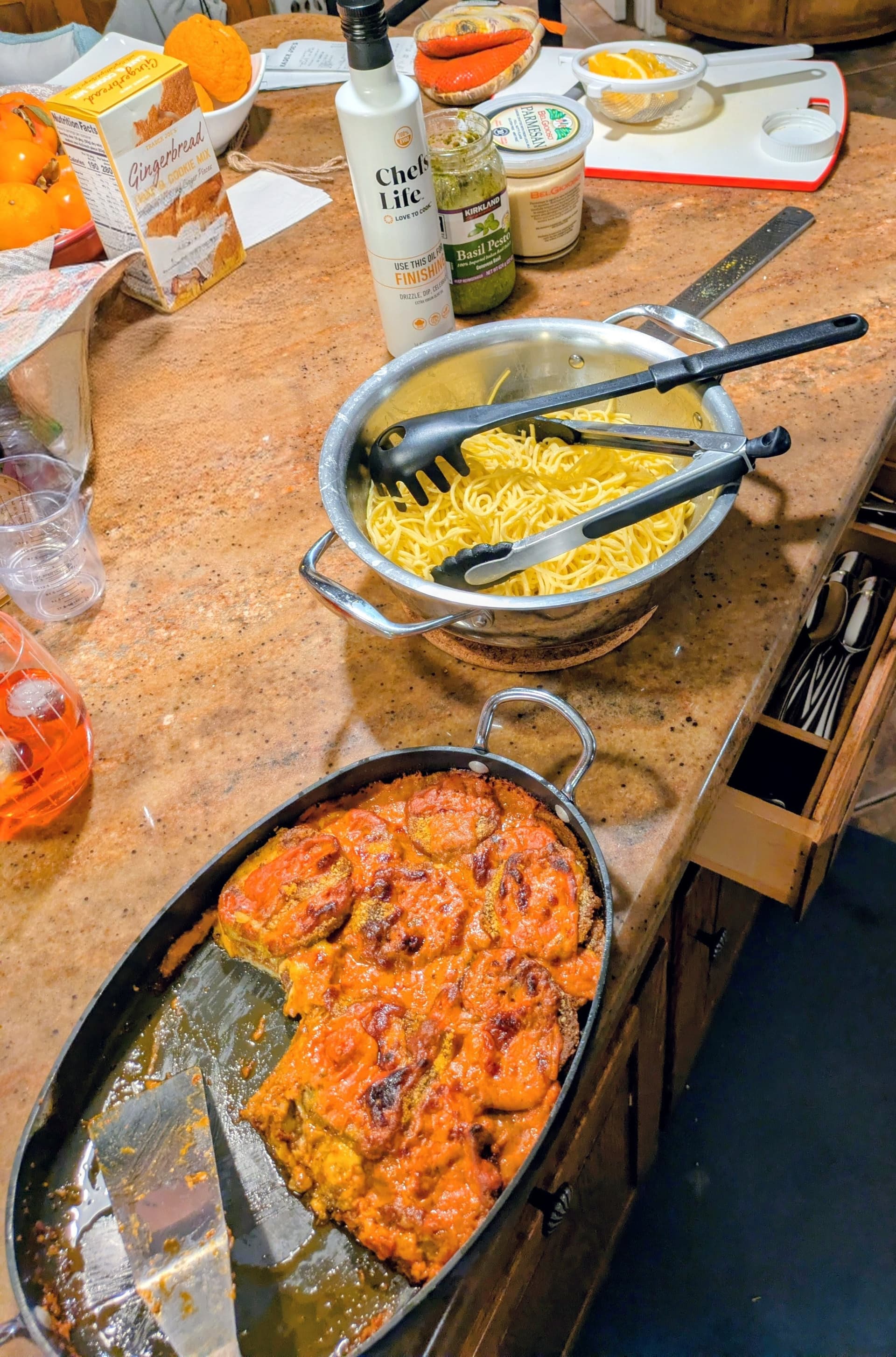 bake til ooey / gooey. (I typically use 30 min at 350F). this is usually a solid vegetarian main course but it’s hard to make it vegan. Lots of vegetarians in my family so I am unusually mindful of that.