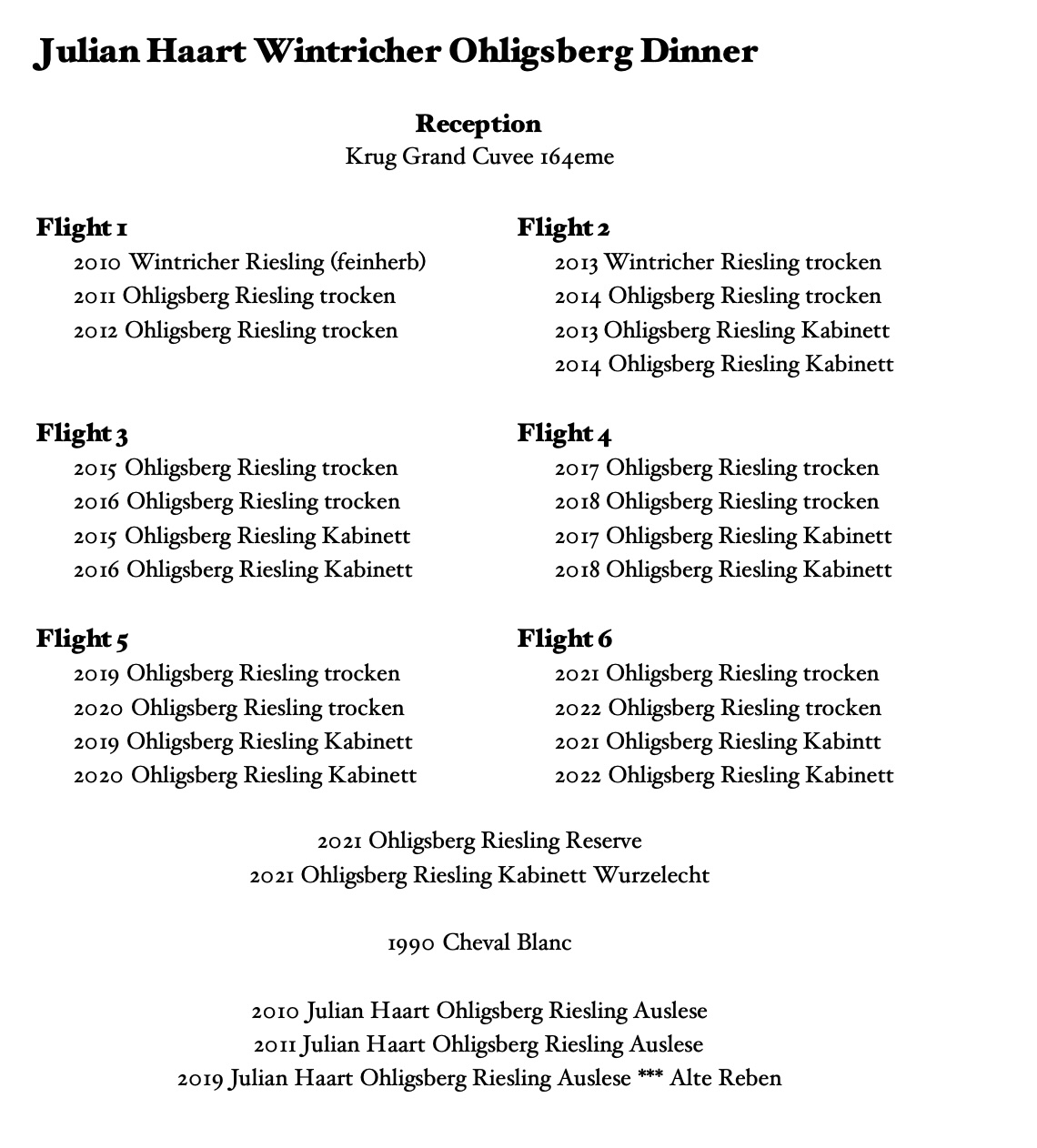 Drank some Julian Haart last night. @Rodrigo_B and Albert Kolesnikov put together an incredible three day tasting of Julian Haart. Friday was Goldtropchen, last night was Ohligsberg and today a Schubertslay Brunch. Julian flew over for the event. What an outstanding once in a lifetime opportunity to do such an indepth study of Julian’s wines.