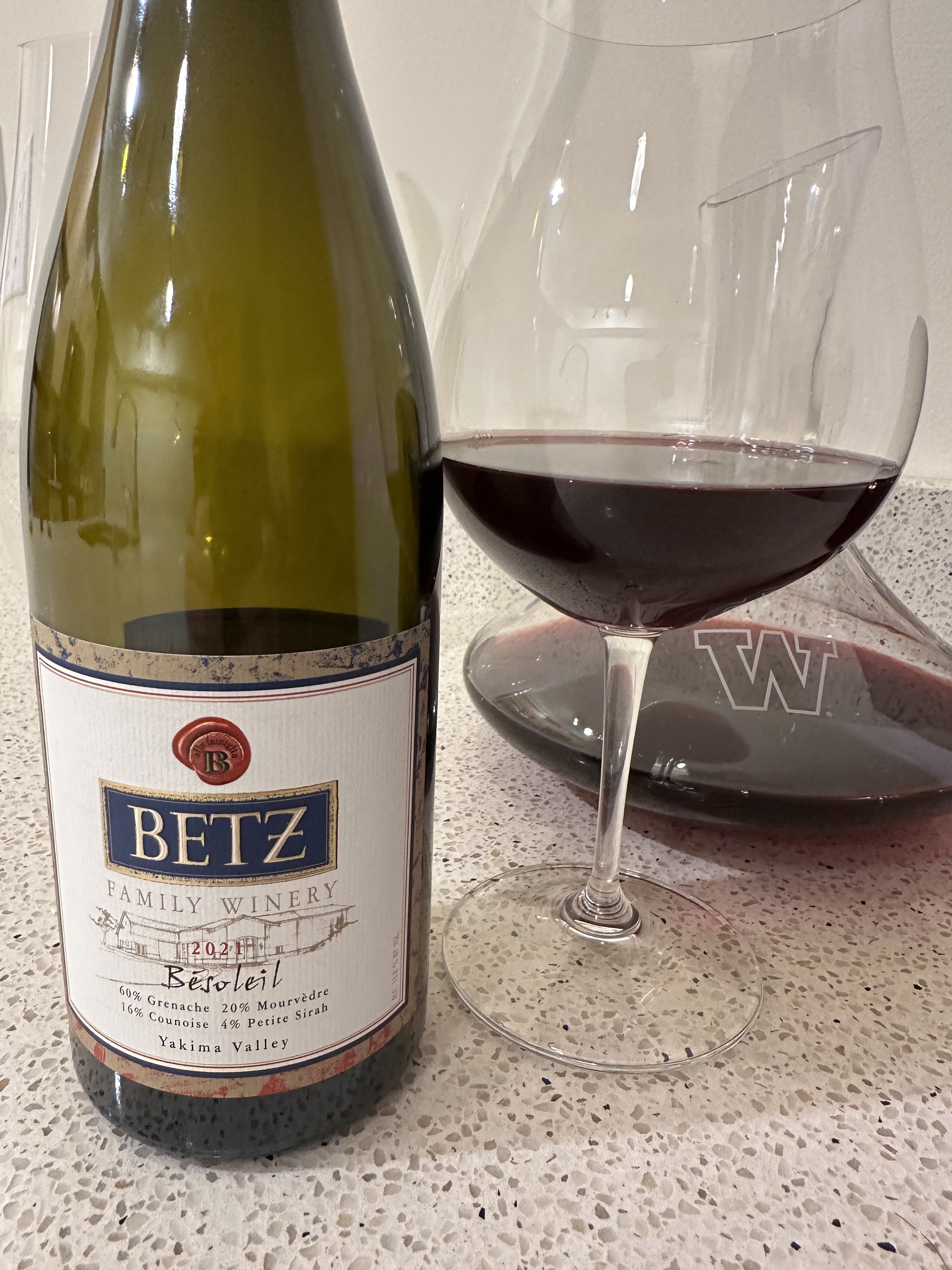 I’ve been sampling a 2018 Desert Wind ‘Ruah’ [Wahluke Slope] over the last couple of days. I had read about it in WS and in a recent book on PNW wines, but had not seen/tasted one until now. It’s an estate grown, proprietary blend of Merlot, Syrah, CS, CF, Carmenere, Tempranillo, Malbec, and Petit Verdot although the first two varietals are the lions share of the blend. Presumably the winemakers are still determining the best grapes for their land, aspect, climat and thus there is an unusual palette for the blender to work with. Still, for my taste, it’s too fruity/loose/unstructured. At least it’s not heavy, at 13.9% abv, and more medium bodied than full. Agglomerated Vinc cork, very premium feeling bottle and label, but the product feels more tuned to the Big Flavor fan than a Francophile. I’d give it a B but would note professional writers were more enthused.