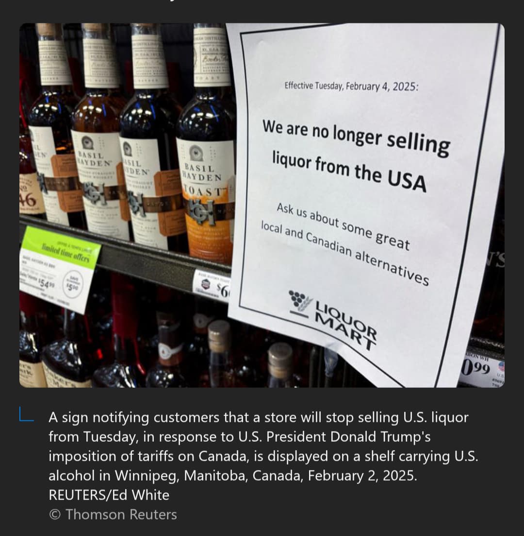 “Every year, LCBO sells nearly $1 billion worth of American wine, beer, spirits and seltzers. Not anymore…the government of Ontario has directed (the) LCBO to indefinitely stop all sales of U.S. alcohol products in our stores and online and to stop wholesale sales…”
