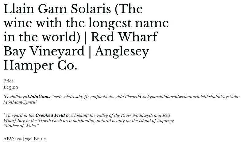I don’t know if this is an AI hallucination, but it will be hard to compete with this for a single appellation name. Note that it is normally shortened to something that seems to approximate the British pronunciation of “tomato.”