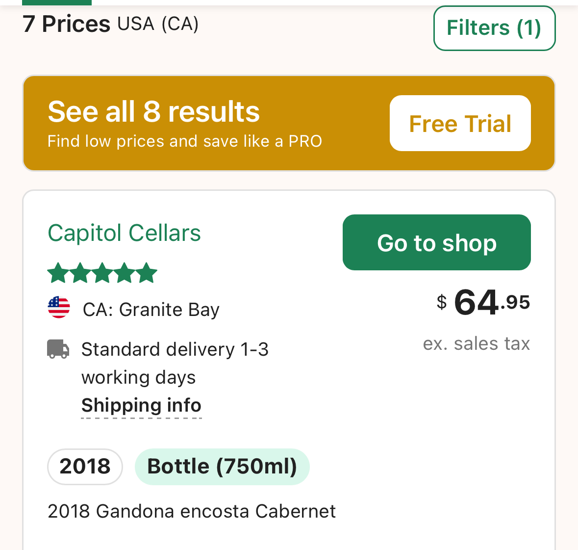 You’re likely right, it also matches what WS says they found as low price @WL 99$ 2018 Gandona Encosta Cabernet Sauvignon | Wine Library
