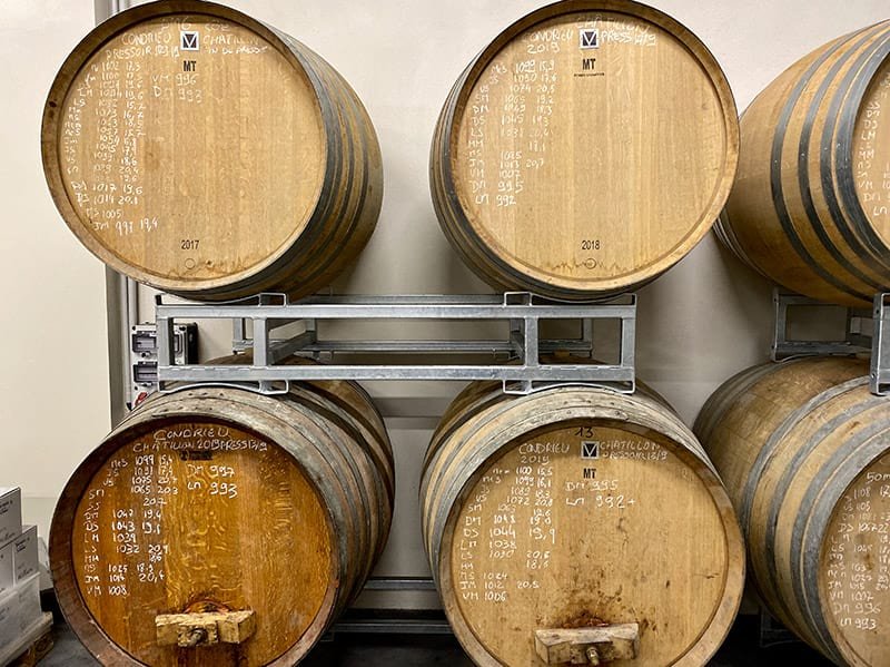 The dessert wine you mention should be a late harvest condrieu 2018. Amazingly tasty and will be released commercially (albeit in small quantities). Next time ask him to have you try the various plots of CR in barrel (mollards, Landonne,…) - special experience!